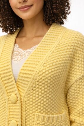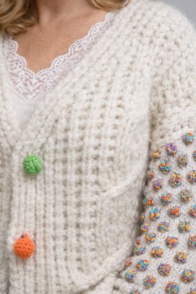 Bobble Sleeve Ribbed V-Neck Cardigan