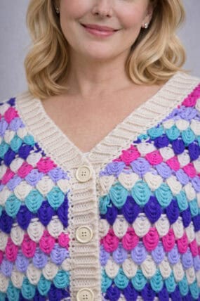 Multi-Colour Textured Cotton Blend V-Neck Knit Cardigan