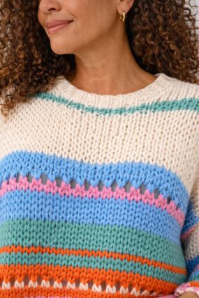 Striped Cotton Blend Slash Neck Knit Jumper