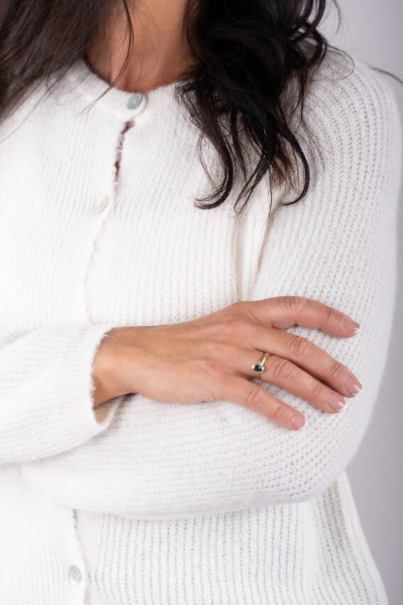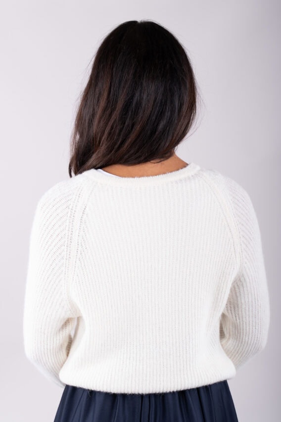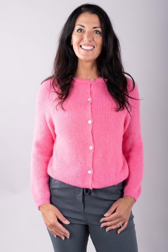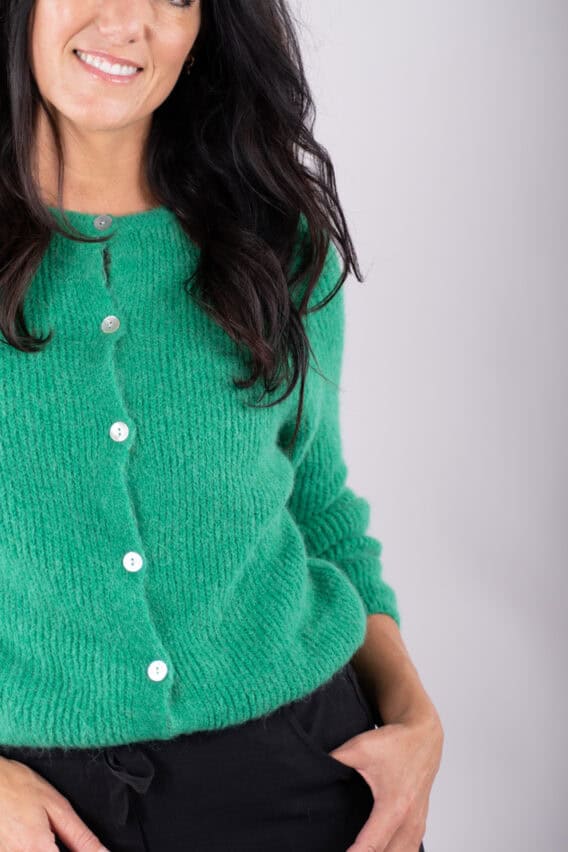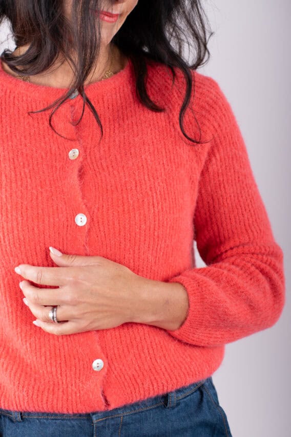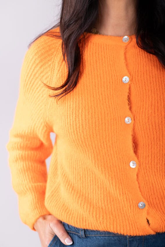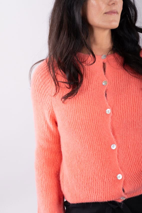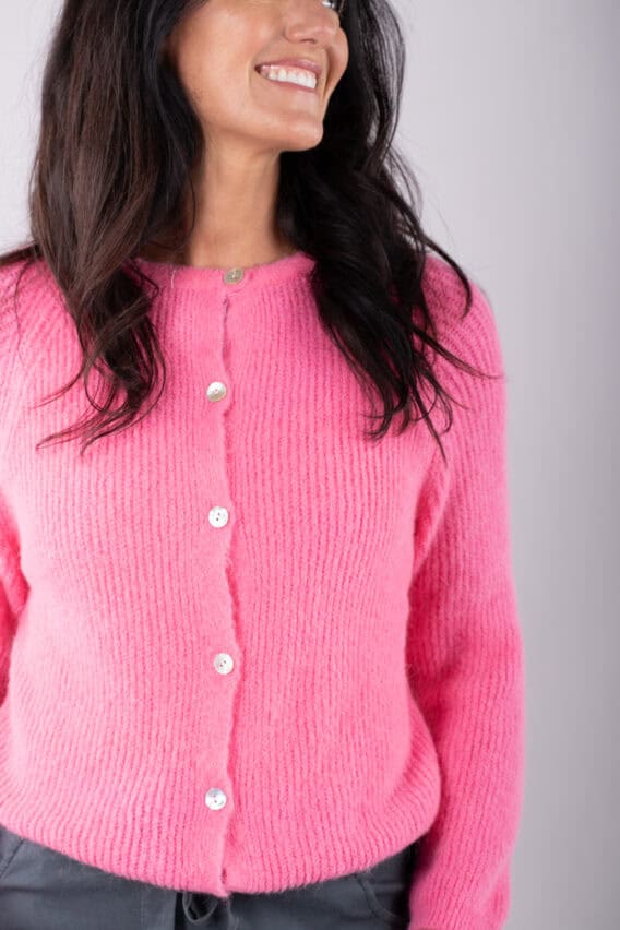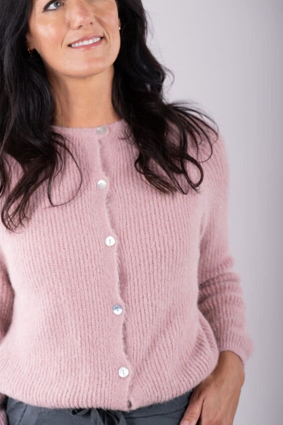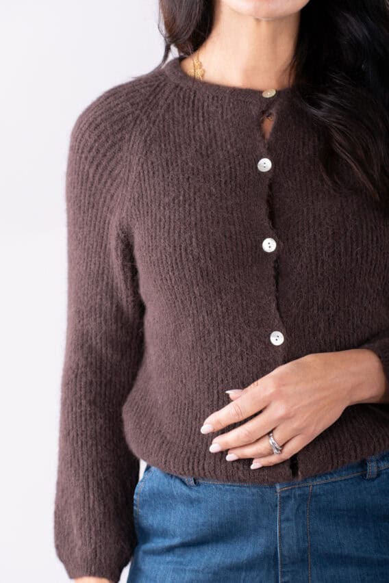 This soft alpaca blend ribbed cardigan is the epitome of cozy elegance. The delicate pearl buttons down the front add a touch of sophistication, while the full length sleeves and round neck provide comfort and warmth. Perfect for layering over your favourite outfits, this cardigan is sure to become a staple in your wardrobe.