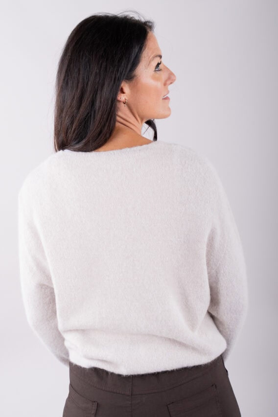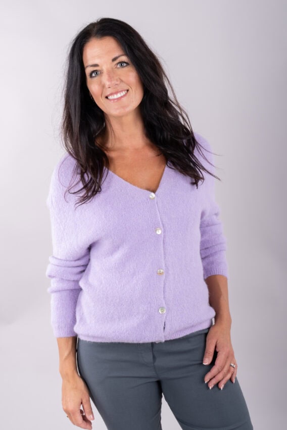 Stay cozy and stylish in this luxurious alpaca blend cardigan. Featuring delicate pearl buttons down the front for fastening, this cardigan exudes elegance. The full-length sleeves and V-neck add a classic touch, while the ribbed cuffs and hem provide a comfortable and flattering fit. Perfect for layering over any outfit, this soft and versatile cardigan is a must-have for your wardrobe.
