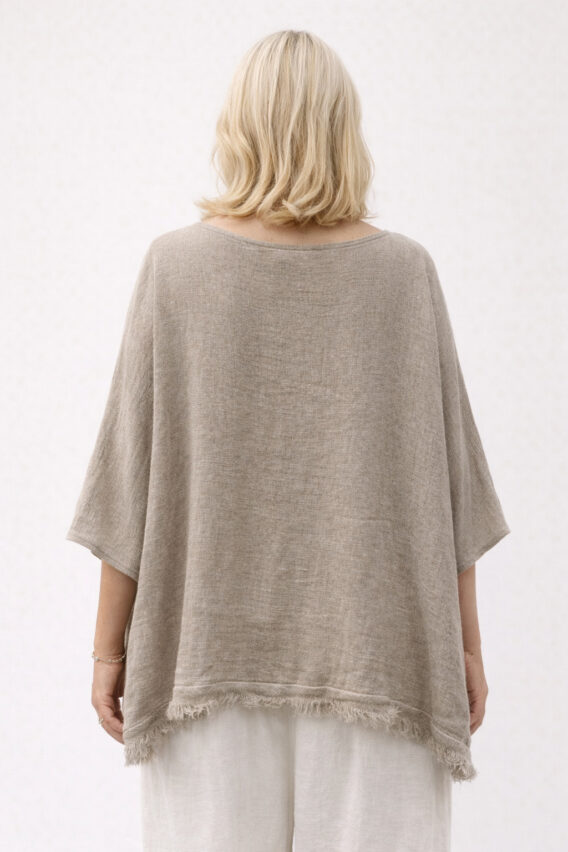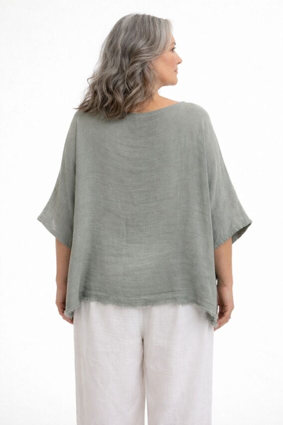 Lightweight and effortlessly elegant, this cotton-linen blend top is designed for relaxed, breathable comfort. The batwing sleeve silhouette creates a soft, floaty drape that moves beautifully with the body, offering an easy fit that flatters without clinging. Crafted from a natural fibre blend, it feels cool and airy against the skin — perfect for warm days and layering through the seasons.