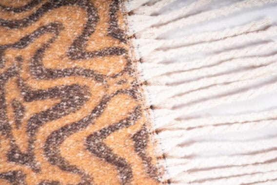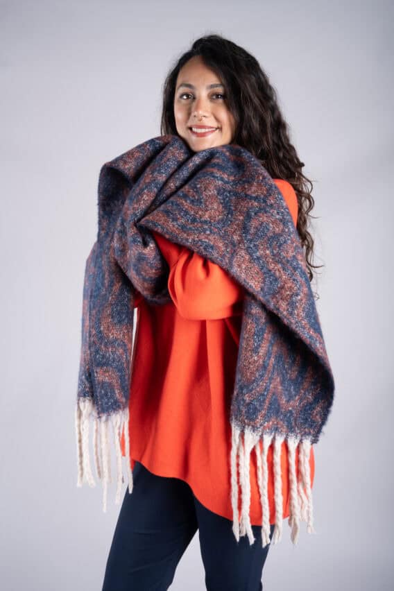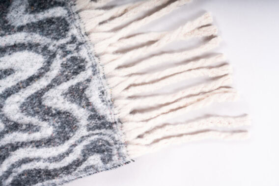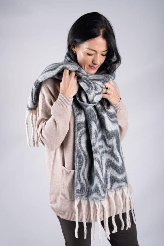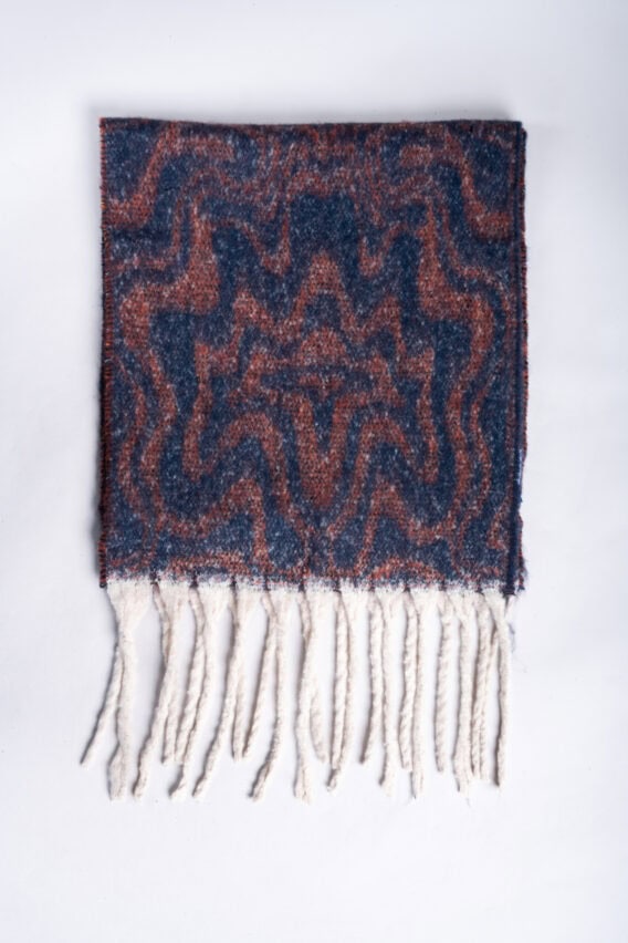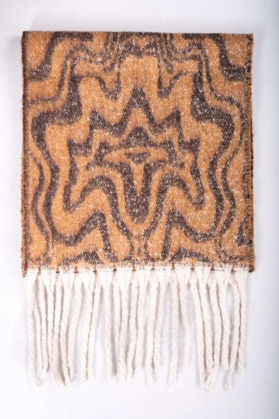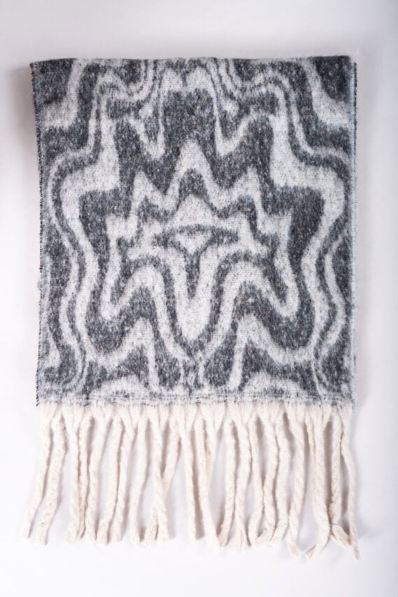 Stay cosy and stylish with this Chunky Woven scarf featuring cream tassels and an Abstract Swirl pattern. The frayed edges add a touch of texture to this soft and warm accessory, perfect for keeping you snug during the winter months. Add a touch of boho chic to your outfit with this versatile and eye-catching scarf.