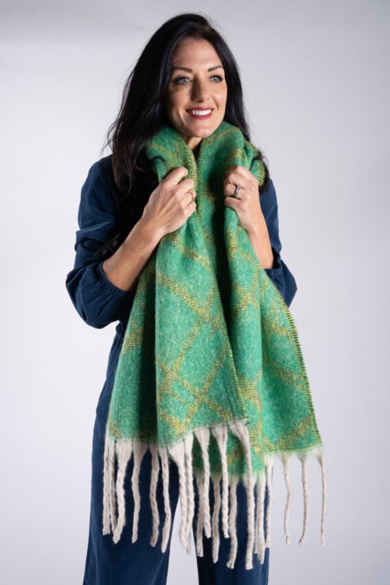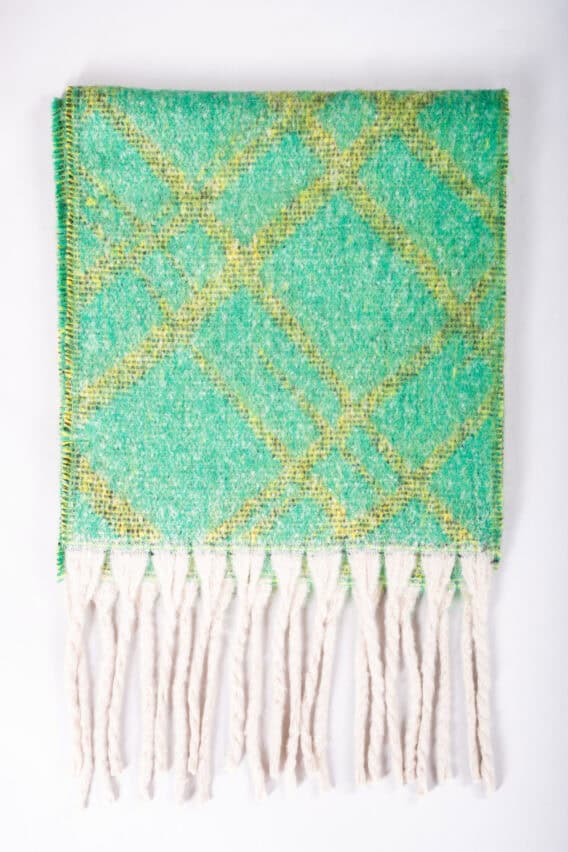 Stay warm and stylish with our Chunky Brushed Woven Tassel Scarf. This scarf features a unique geometric abstract design with frayed edges for a trendy look. Made from a soft and cosy material, this scarf is perfect for keeping you warm during the colder months. Add a touch of flair to your outfit with this must-have accessory.