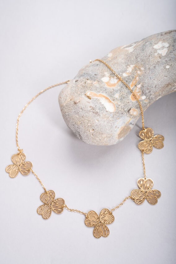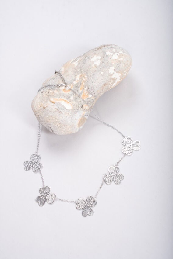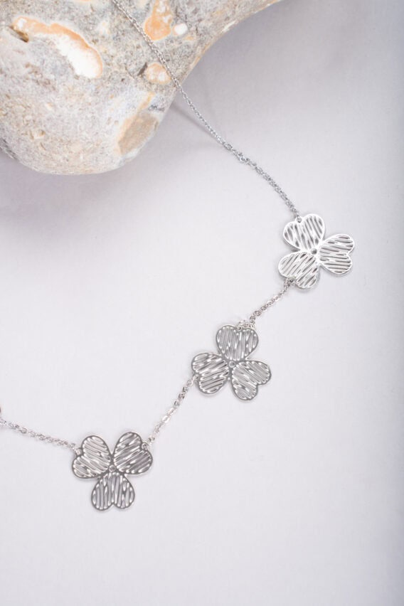 This charming necklace features five delicate three-leaf clover charms, each filled in with intricate lines for added detail. Made from high-quality stainless steel, this adjustable necklace is perfect for everyday wear. The dainty chain and lobster clasp allow for a customizable fit, while the nickel-free material ensures a comfortable and itch-free wear. Bring a touch of luck and style to your look with this stunning clover necklace.