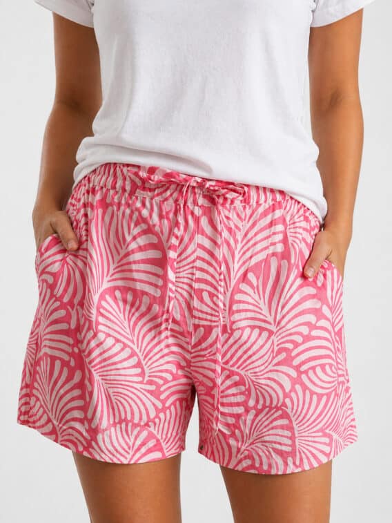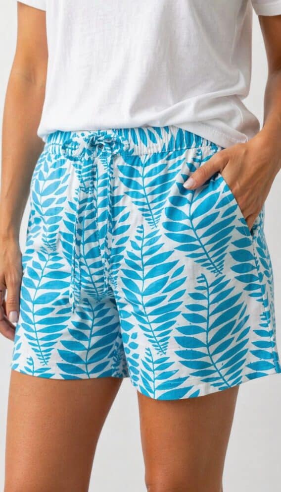 Cotton Leaf Print Lightweight Shorts