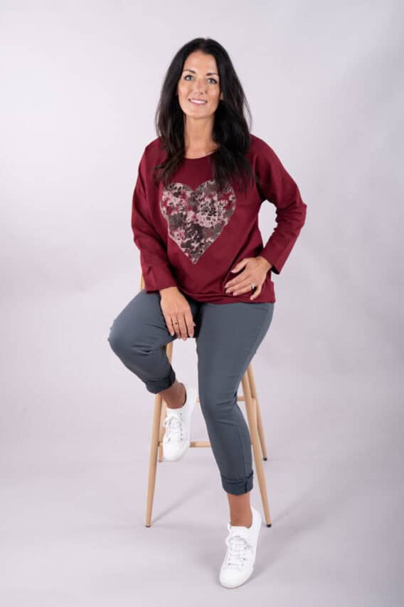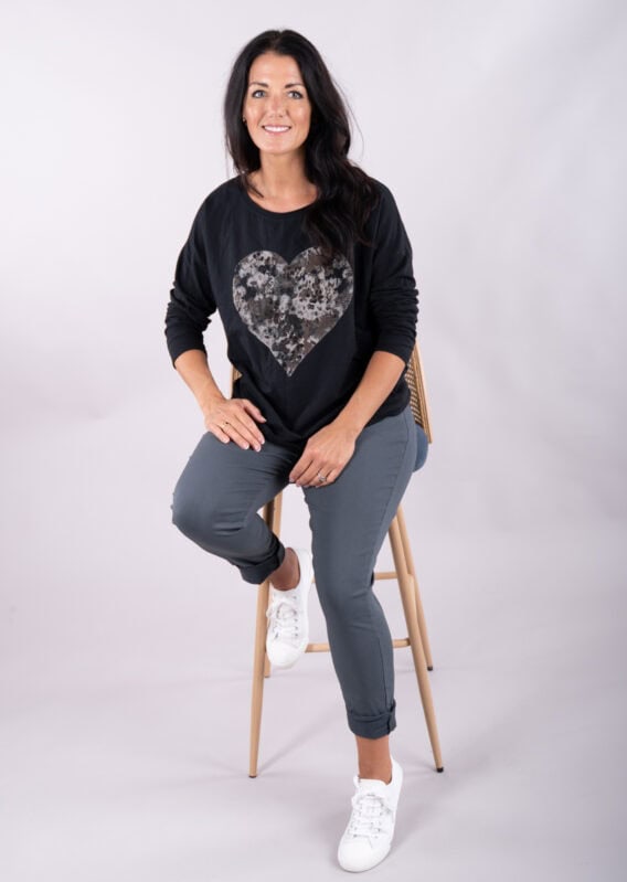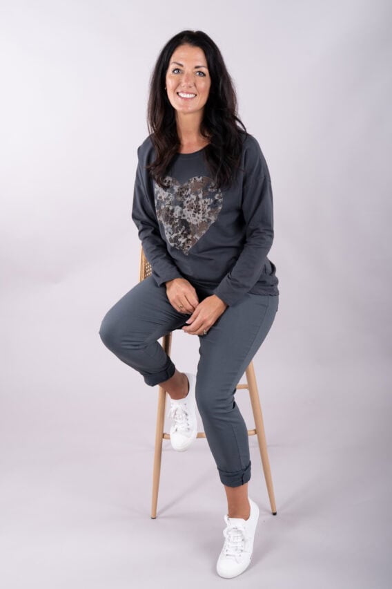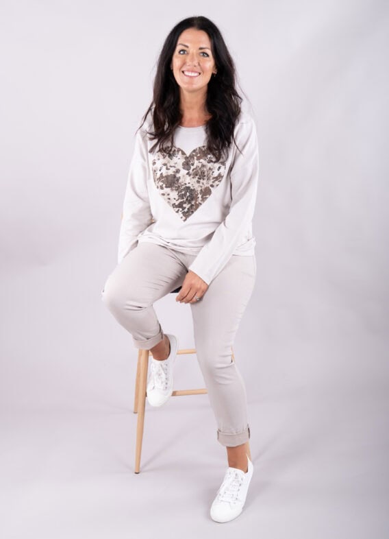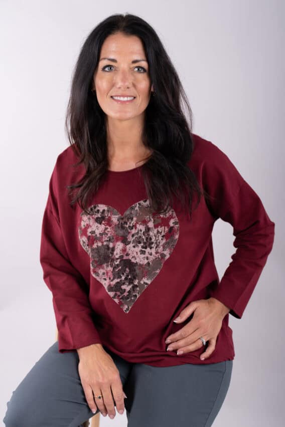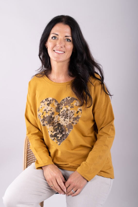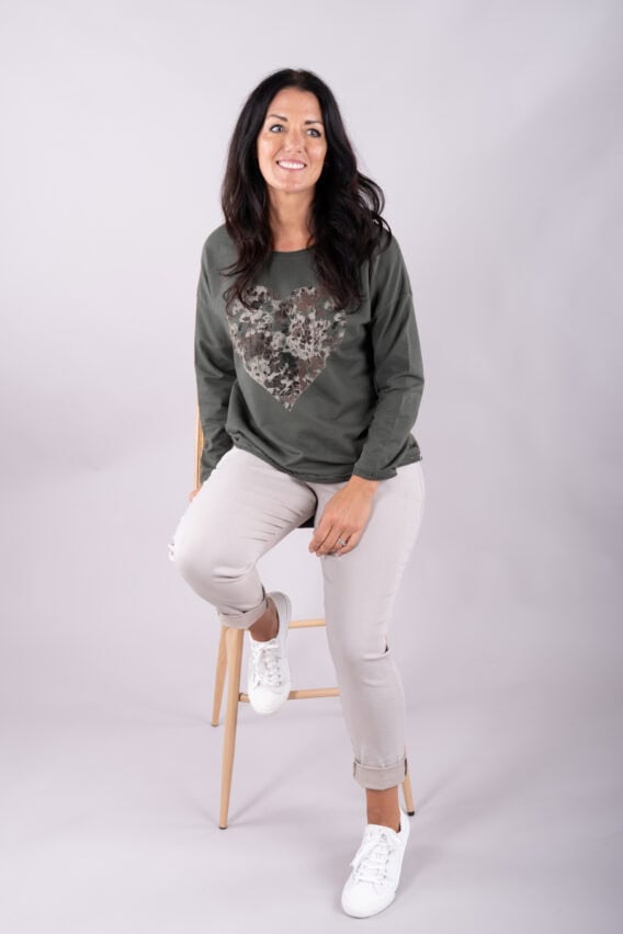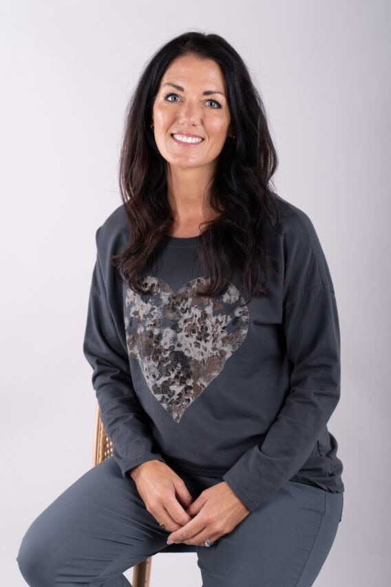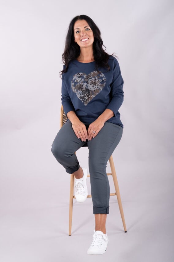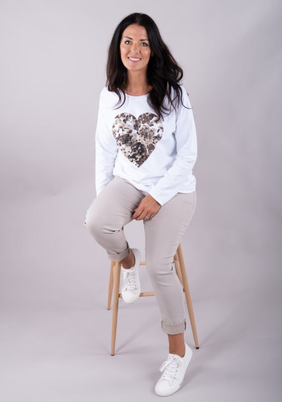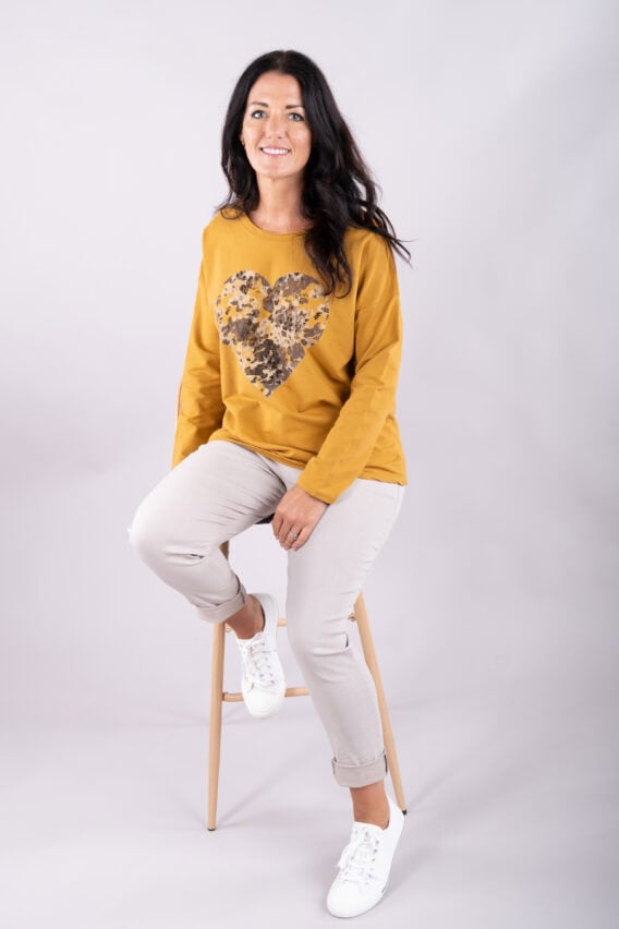 This round raw neck cotton top is a versatile and stylish addition to any wardrobe. With full length sleeves and a mottled leopard print heart design, it adds a touch of fun and personality to your everyday look. Pair it with magic trousers or jeans for a comfortable and chic outfit that is perfect for any occasion. Made from soft and breathable cotton, this top is sure to become a staple in your wardrobe rotation.