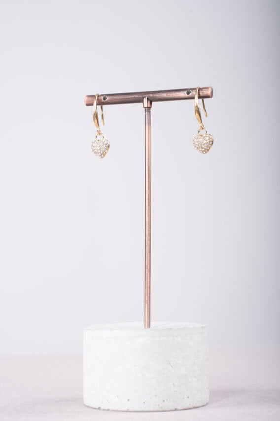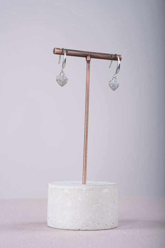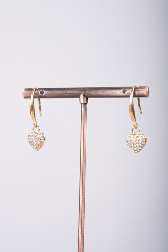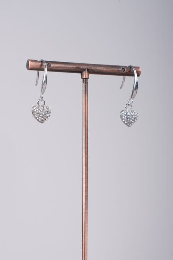 Diamanté Heart Stainless Steel Drop Hook Earrings