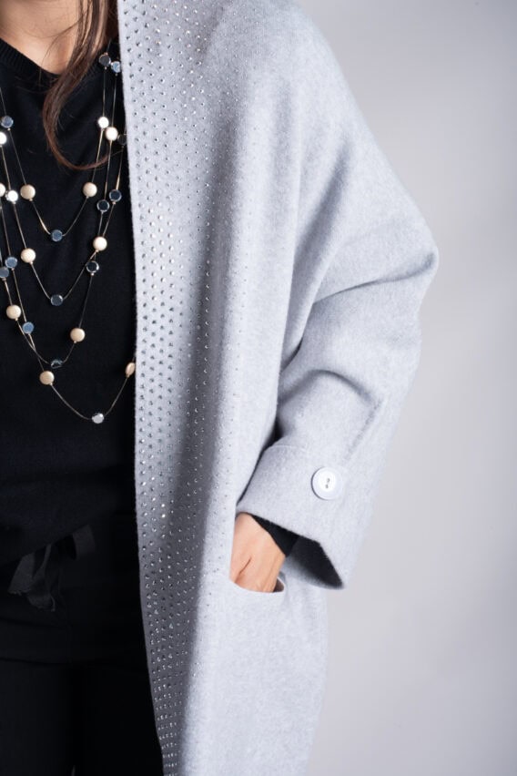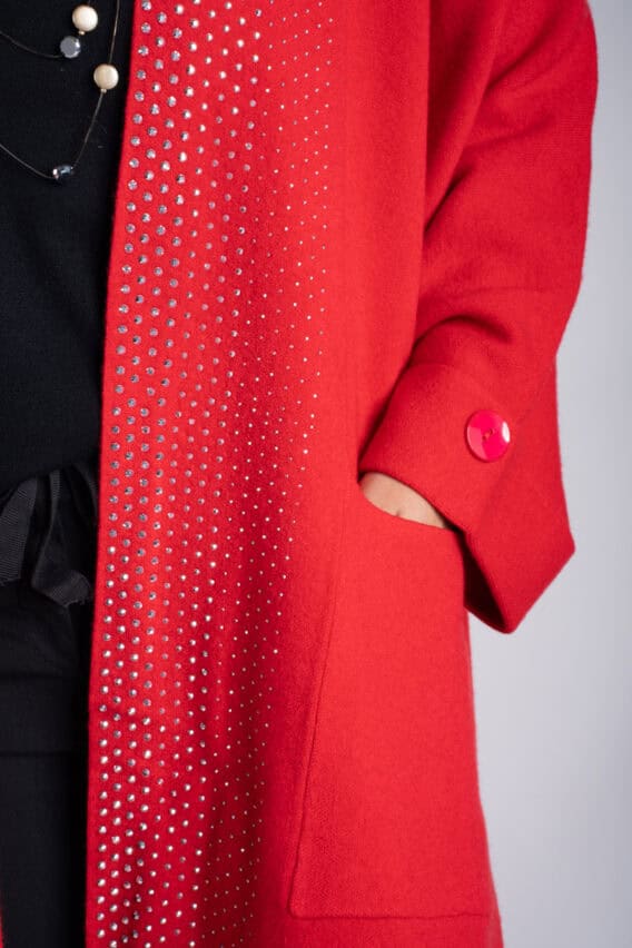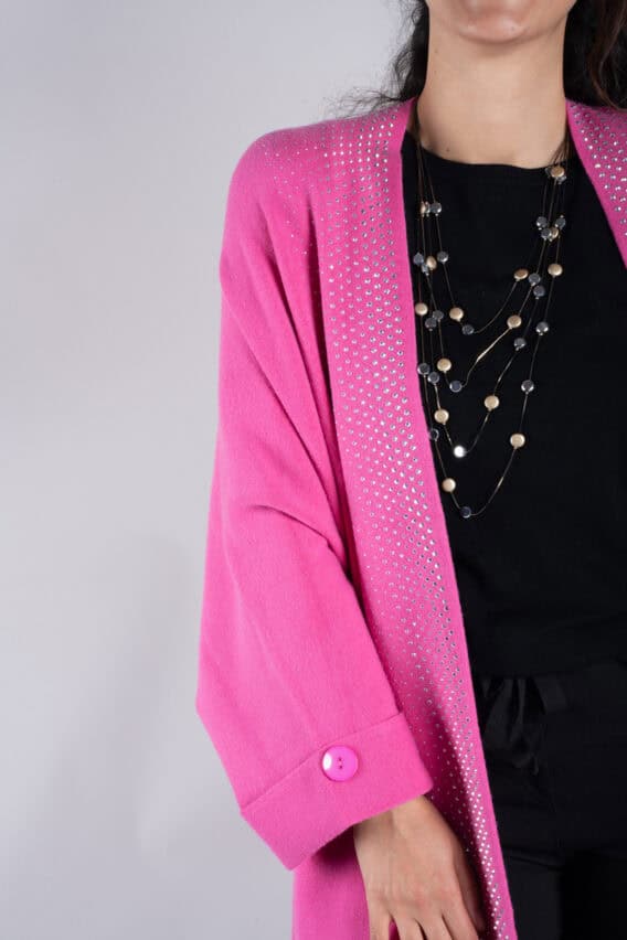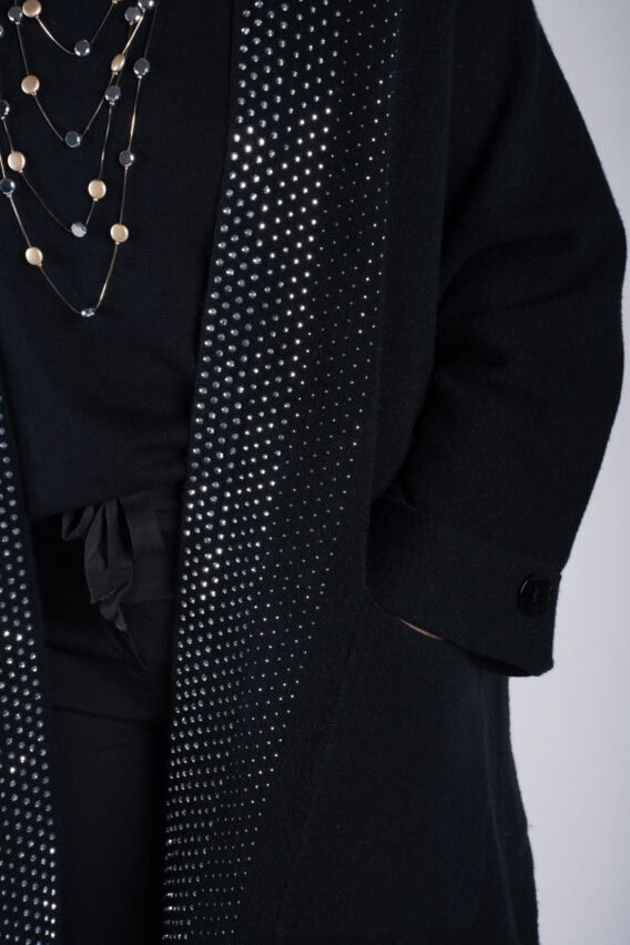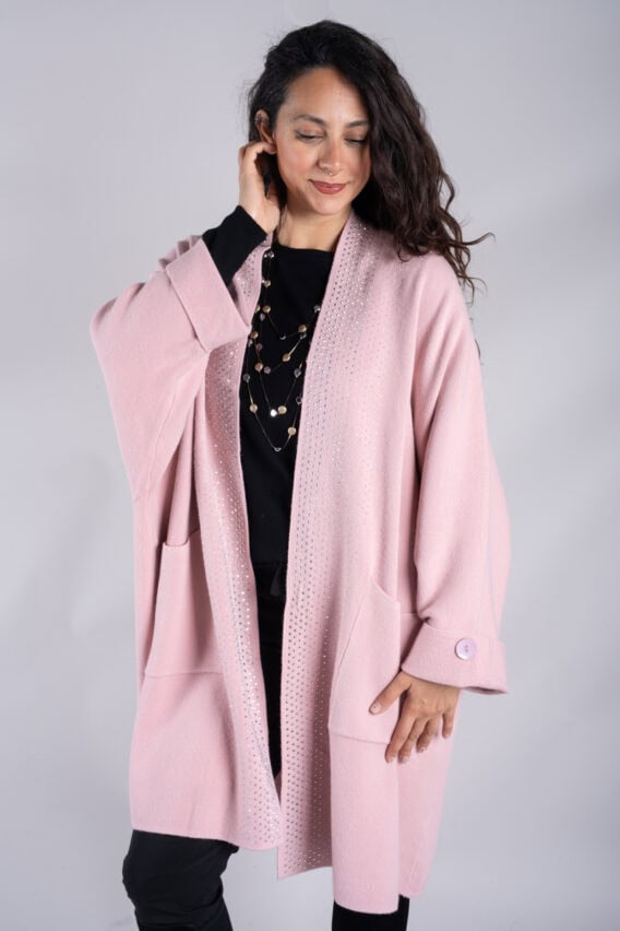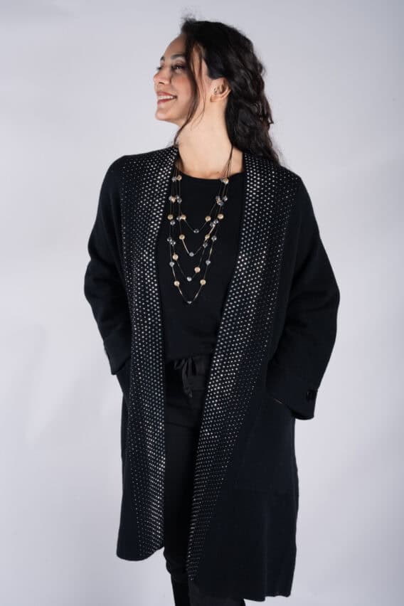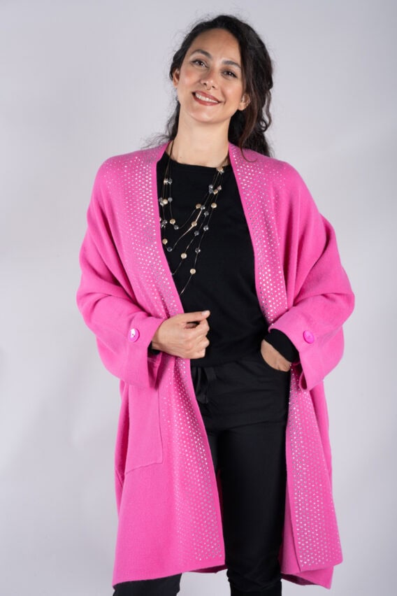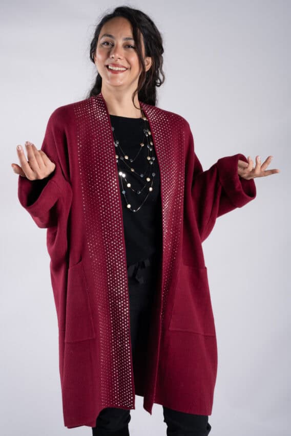 This stunning Embellished Sparkly Open Knit Cardigan is the perfect addition to your wardrobe for the festive season. The embellishment down the front adds a touch of glamour, while the full length sleeves with rolled cuffs and large button give it a stylish and sophisticated look. The two front pockets are practical and convenient, while the centre back seam adds an extra touch of detail. This cardigan is sure to make a statement at any holiday gathering or special occasion.