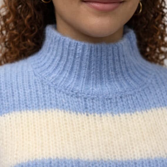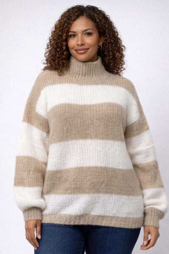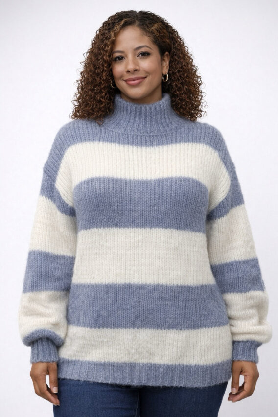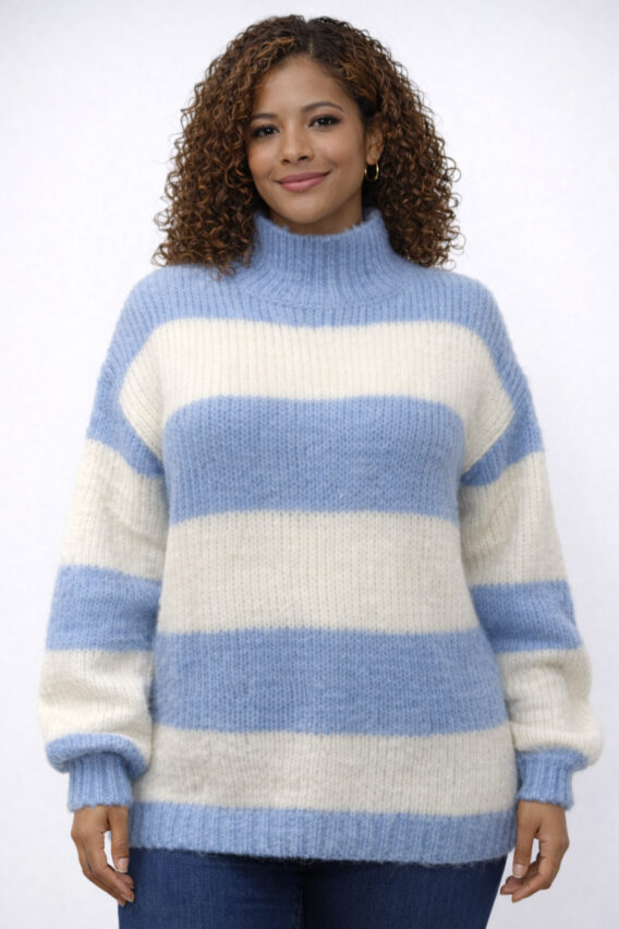 Stay effortlessly stylish and cosy in this funnel neck stripe knit jumper, the perfect layering piece for spring days. Designed with a relaxed silhouette and soft-touch knit, it features a flattering funnel neckline and timeless horizontal stripes for an easy, everyday look. Ribbed cuffs, neckline, and hem provide a snug fit while helping the jumper hold its shape wear after wear.