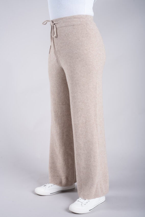 Knitted Wide Leg Ribbed Jogger With Elasticated Waistband