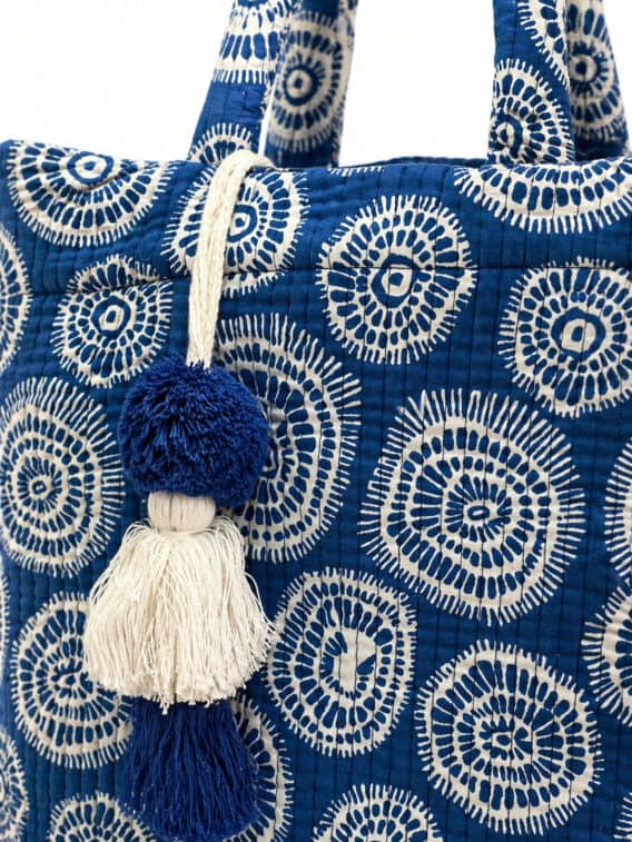 Large Quilted Cotton Blend Geometric Print Bag