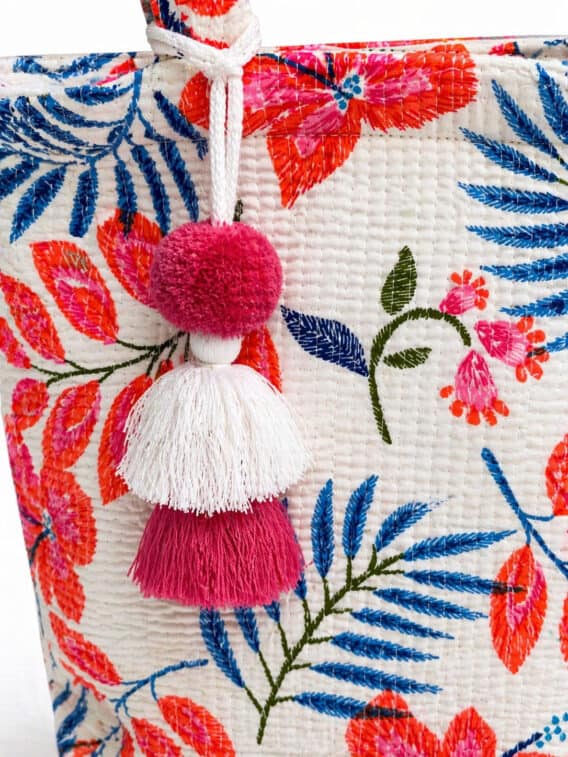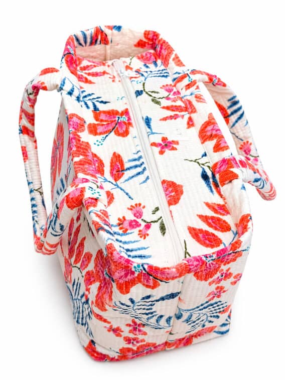 Large Quilted Cotton Blend Tropical Floral Print Bag