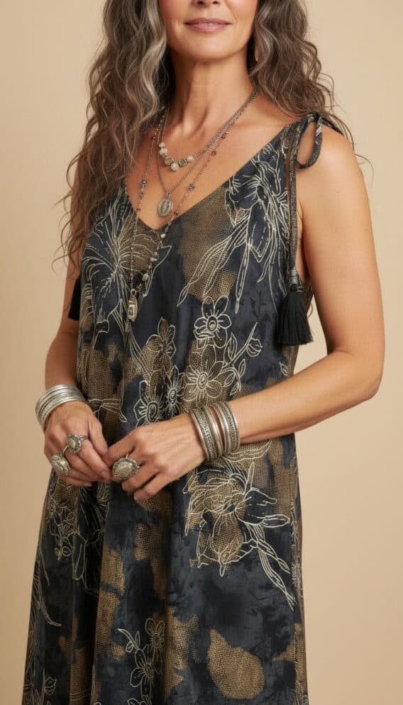 Its airy, free-flowing shape enhances the relaxed bohemian mood, making it an ideal choice for warm-weather days, holidays, or laid-back evening occasions.