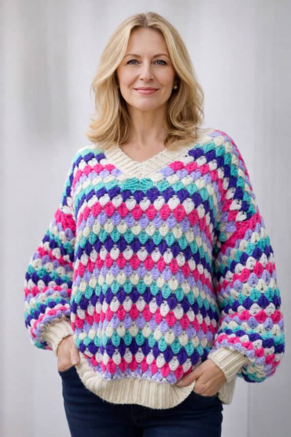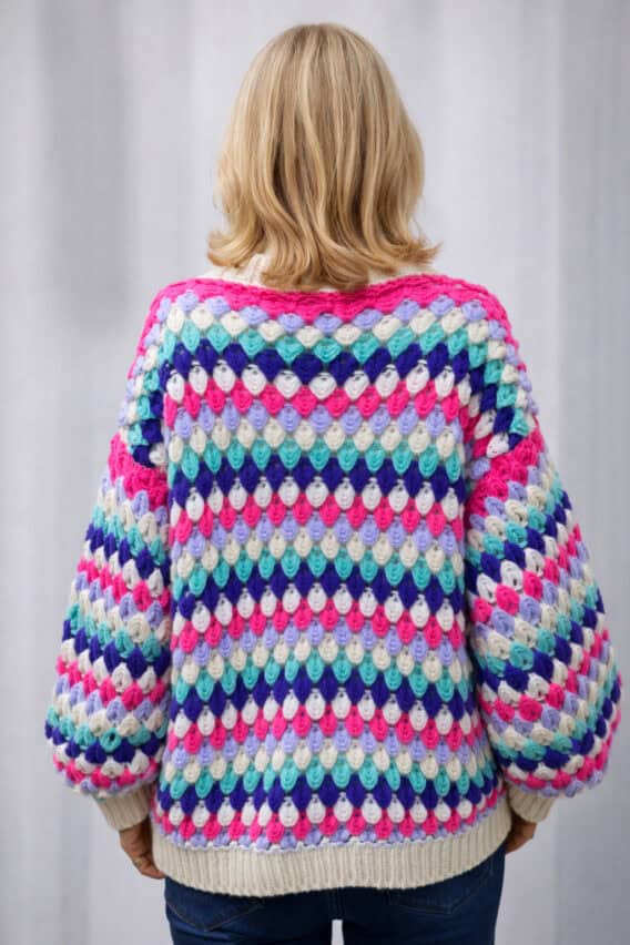 Brighten your everyday wardrobe with this multi-colour textured V-neck knit jumper, crafted from a soft cotton-blend yarn for comfort and breathability. The vibrant mix of cheerful hues is enhanced by the tactile knit pattern, creating depth and visual interest. A contrasting ribbed neckline, hem, and cuffs frame the silhouette while adding structure and a polished finish. Easy to style and uplifting to wear, this jumper is a feel-good statement piece perfect for bringing colour and warmth to any casual look.