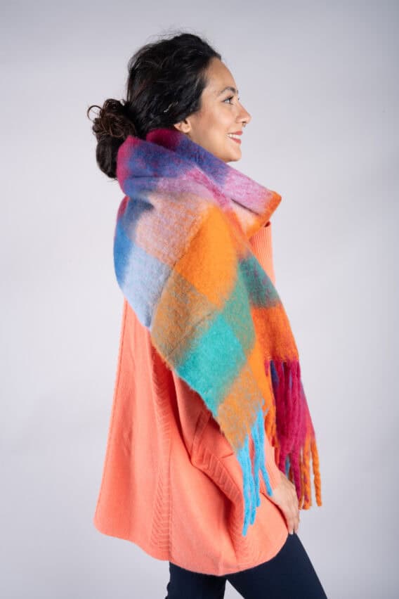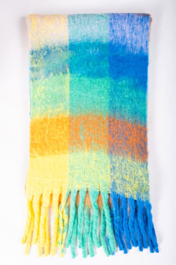 Add a pop of colour and style to your outfit with this vibrant Multicoloured Checked Tassel Scarf. Made from a brushed woven fabric, this scarf features a bold and eye-catching checked pattern in a variety of bright hues. The tassel detailing adds a playful touch to this accessory, making it the perfect statement piece for your wardrobe. Whether you’re dressing up a casual look or adding a fun twist to a more formal outfit, this scarf is sure to turn heads and elevate your style.