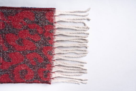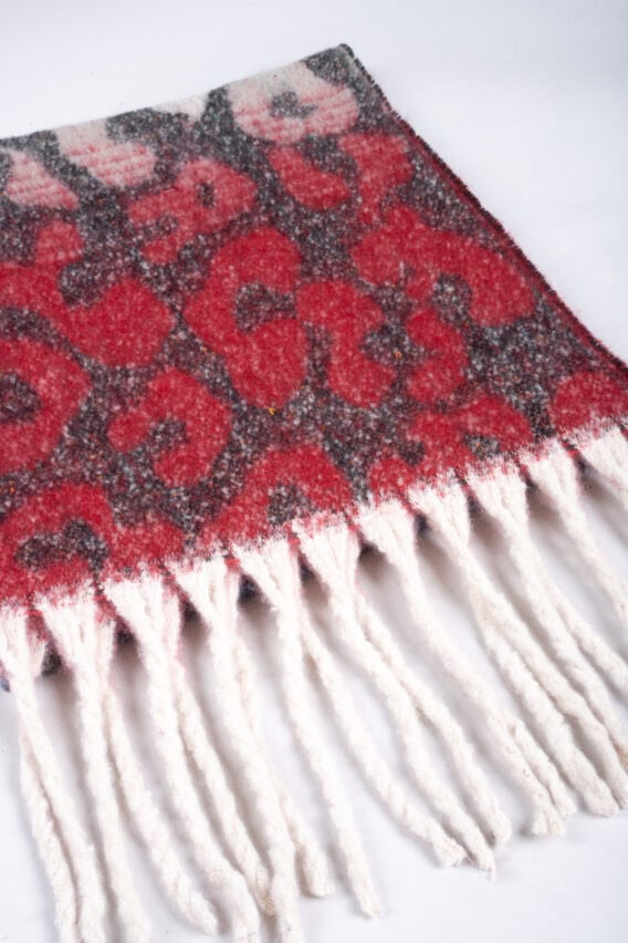 The Ombre red, navy, and cream Animal Print Chunky Tassel Scarf is a stylish and cosy accessory perfect for the autumn season. Made from soft materials, this scarf will keep you warm and comfortable while adding a pop of colour and pattern to your outfit. The chunky tassels add a fun and trendy touch, making this scarf a must-have for any fashion-forward individual. Stay cosy and chic with this versatile and eye-catching scarf.