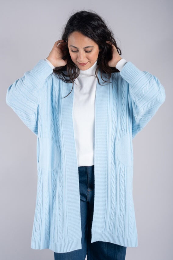 The Open Cable Knit Oversized Cardigan is the perfect addition to your autumn/winter wardrobe. This cosy cardigan features a classic cable knit design throughout with ribbing around the edges, cuffs, and hem for added texture. It also has two front pockets for added convenience. The soft and warm fabric makes it ideal for chilly days, and the full-length batwing style sleeves provide extra coverage. Stay stylish and comfortable all season long in this must-have cardigan.
