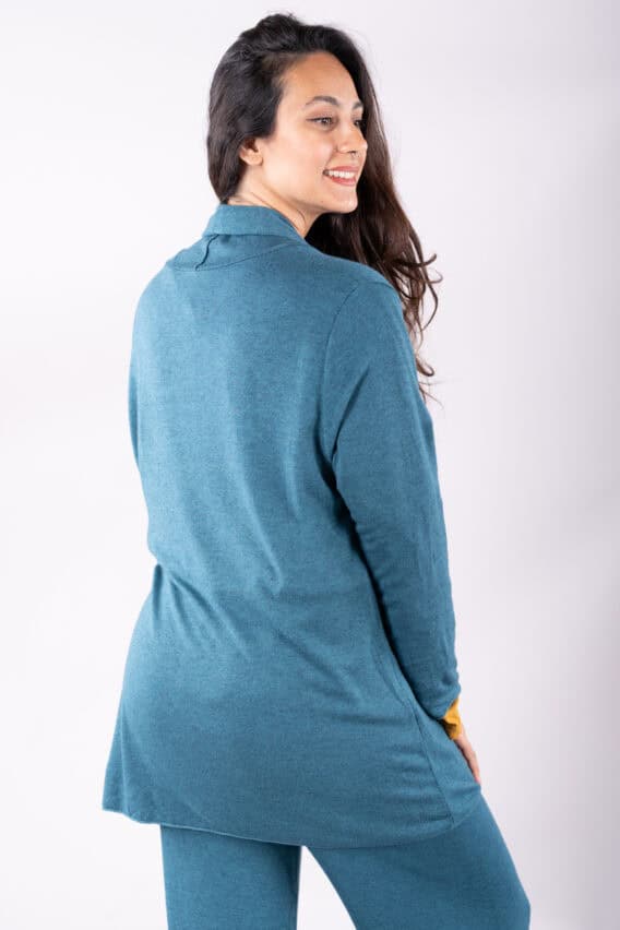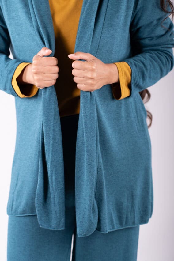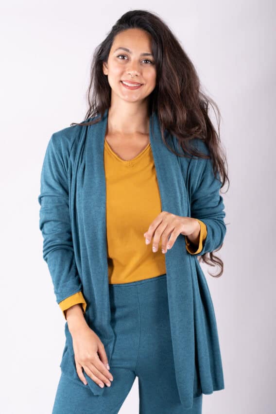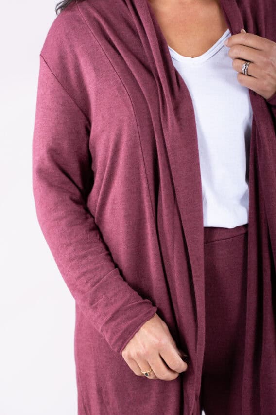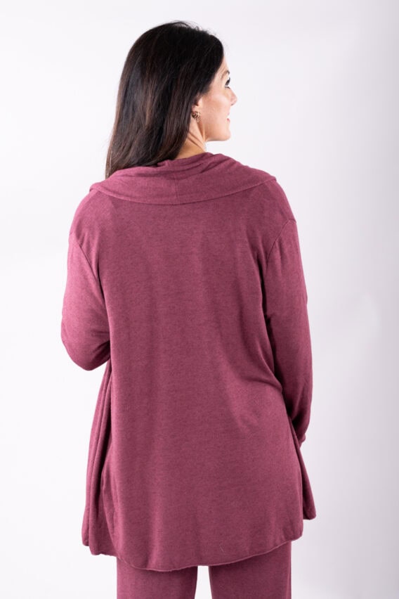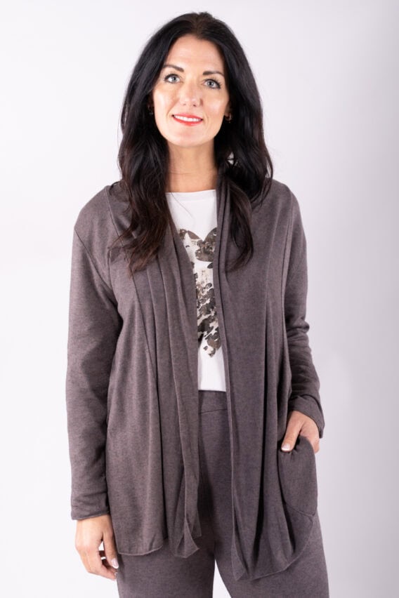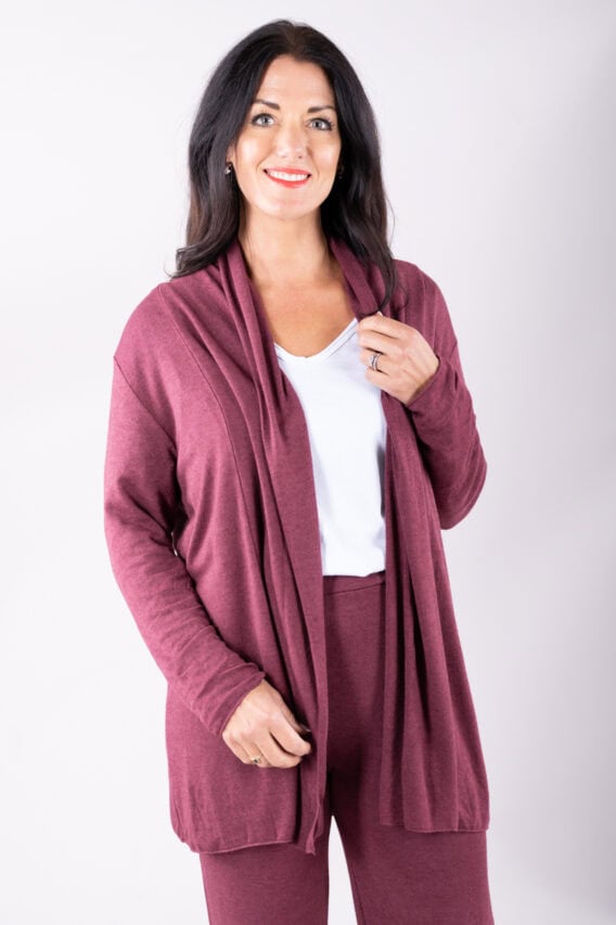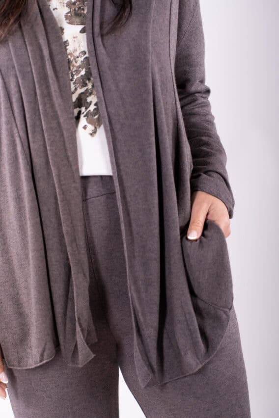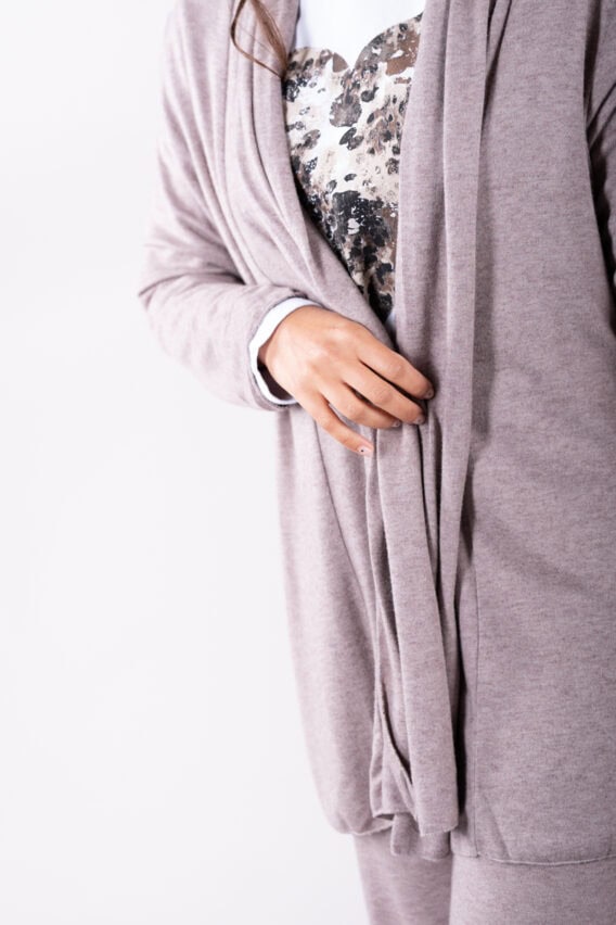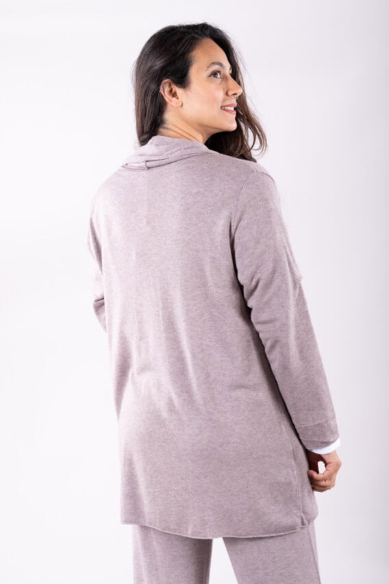 This Open Jersey Knit Long Sleeve Cardigan is the ultimate cosy essential for lounging at home or running errands. The draped front adds a touch of elegance, while the soft material ensures maximum comfort. Pair it with our “Straight Leg Jersey Knit Joggers” for a stylish and effortless look.