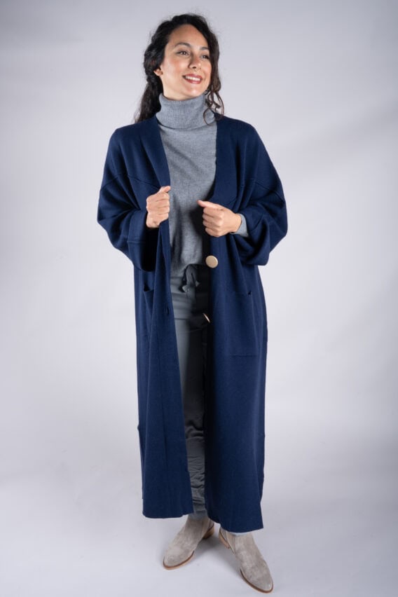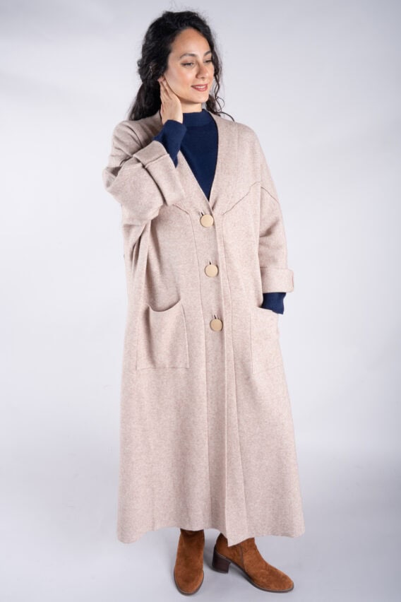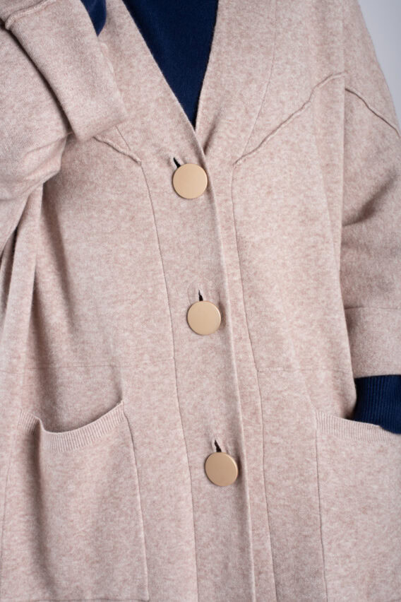 Oversized Long Knit Cardigan With Gold Buttons
