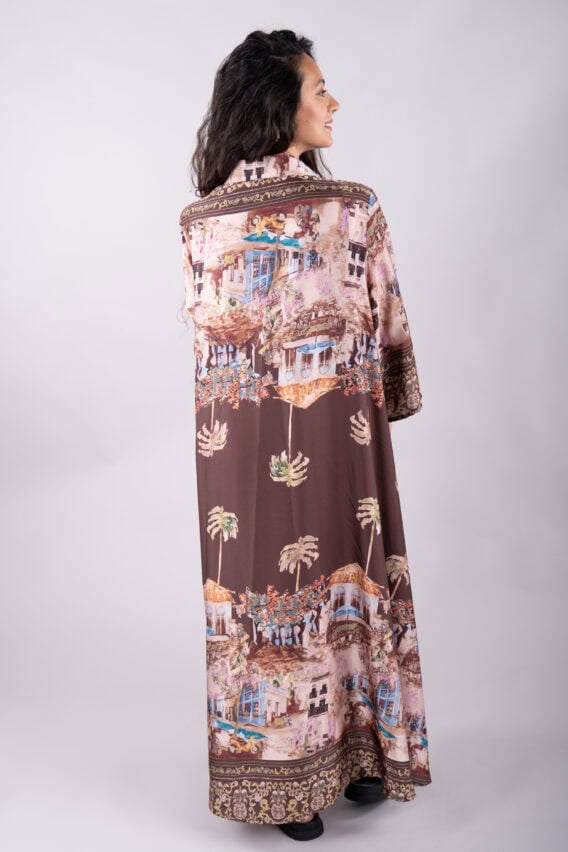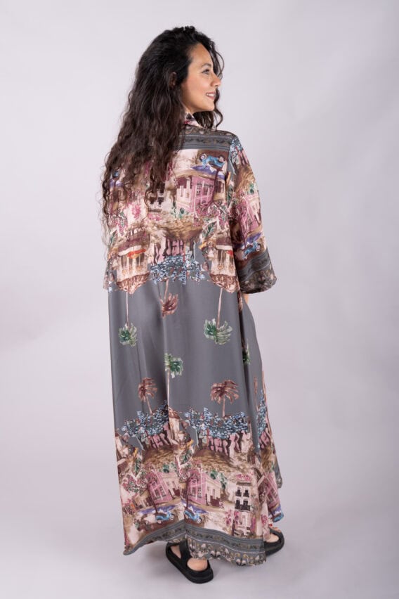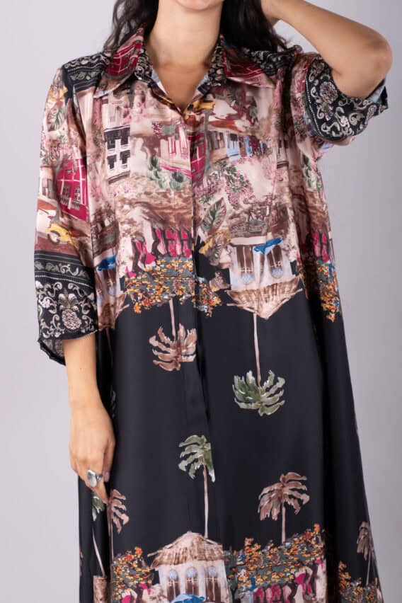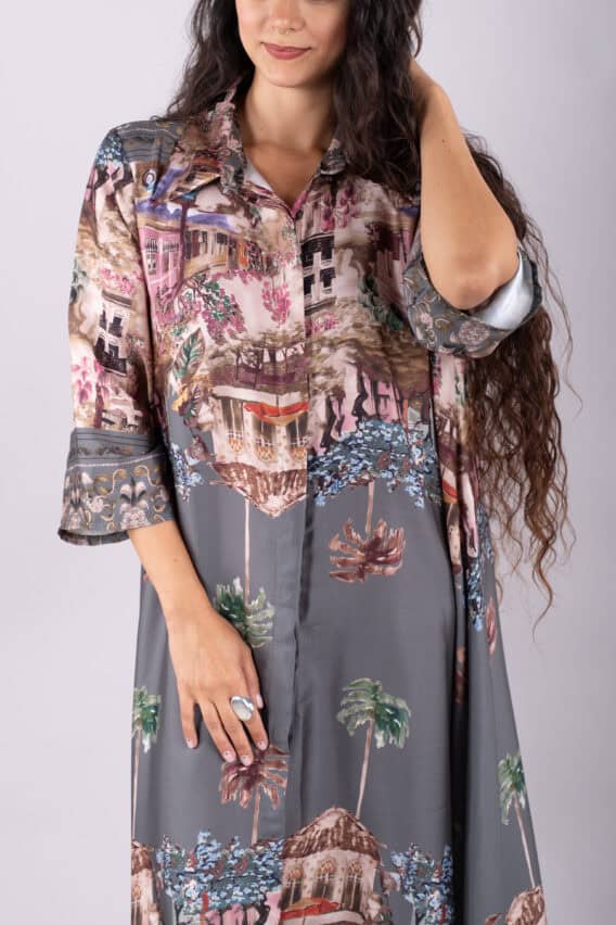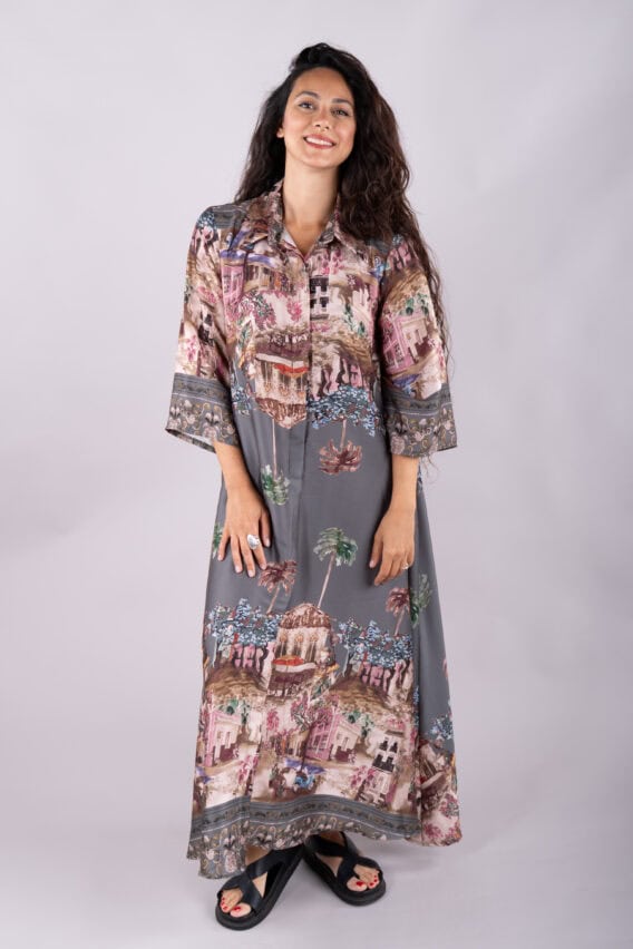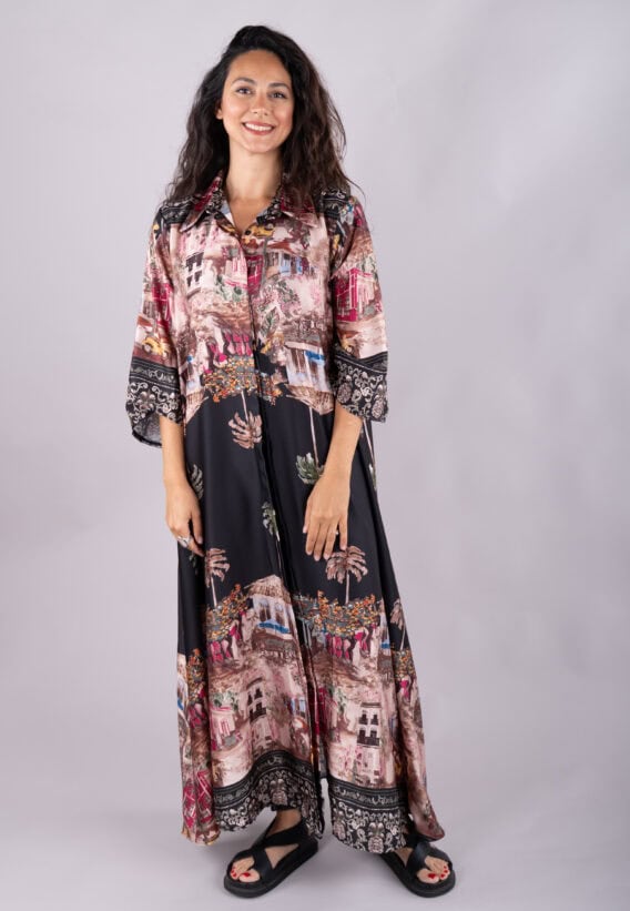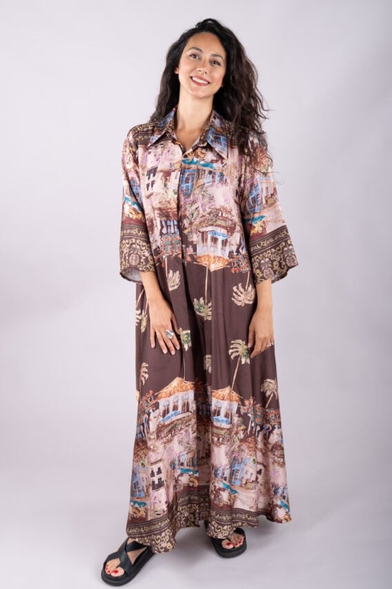 This printed old town mirrored effect maxi dress is a stunning addition to your wardrobe. The a-line silhouette is flattering on all body types, and the three quarter length sleeves add a touch of elegance. The silky feel of the fabric makes this dress comfortable to wear all day long. With buttons down the front for fastening, this dress is easy to put on and take off. Perfect for a day out in the town or a special occasion, this dress is sure to turn heads wherever you go.