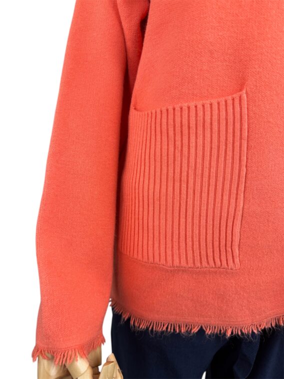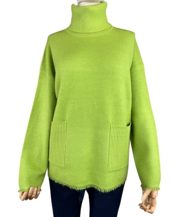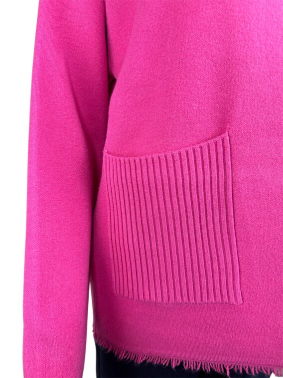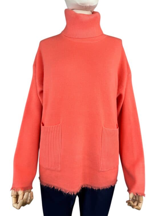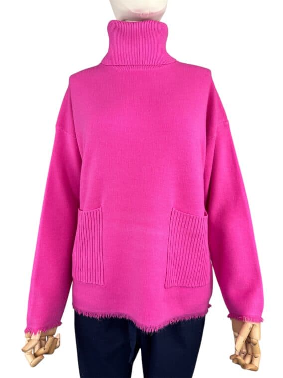 Stay warm and stylish this winter with our ribbed roll neck knit jumper. This cosy sweater features a ribbed neck and pockets for added texture, as well as two front pockets for convenience. The frayed detail on the hem and cuffs adds a touch of edgy style. With full-length sleeves, this jumper is perfect for keeping you warm during the colder months. Pair it with your favourite jeans and boots for a chic and comfortable winter look.