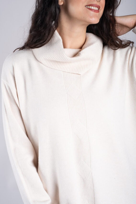 Stay warm and stylish in this Ribbed Roll Neck Long Jumper. This cosy sweater features full-length sleeves, ribbed cuffs, and a ribbed roll neck and hem for added comfort. The diamond ribbed detail down the front adds a touch of texture and interest to this classic piece. Perfect for layering or wearing on its own, this jumper is a versatile and chic addition to your winter wardrobe.