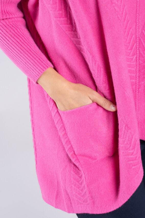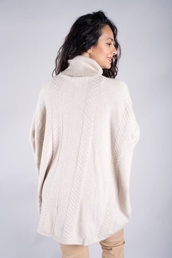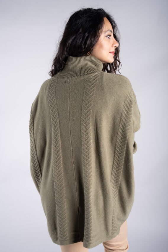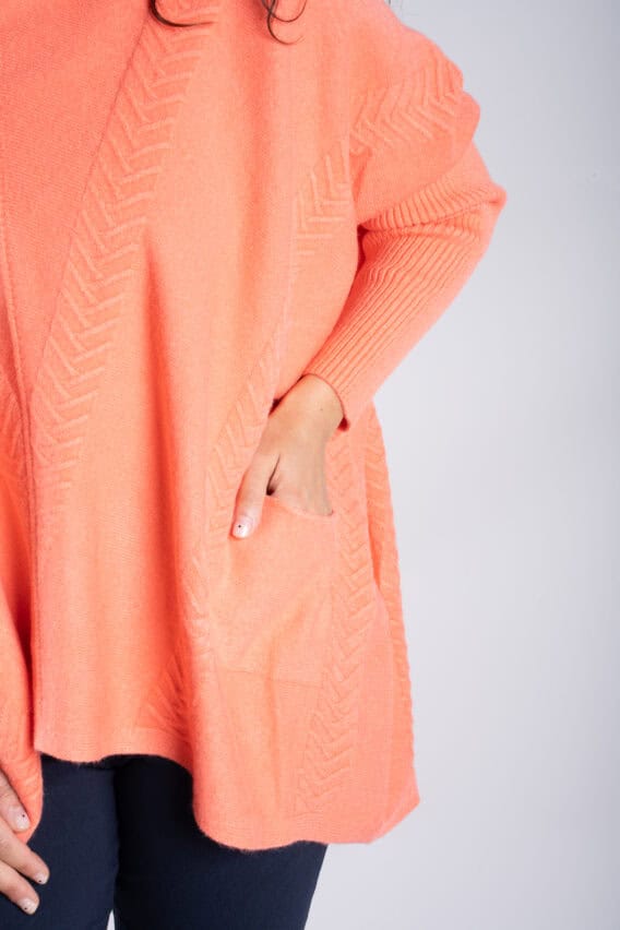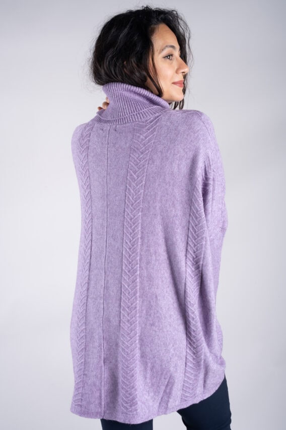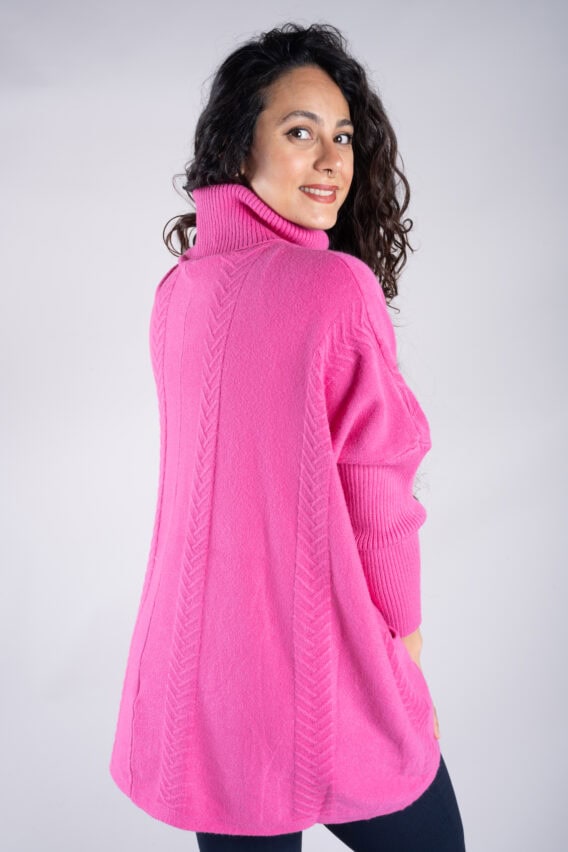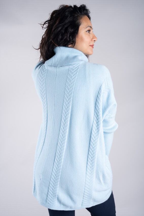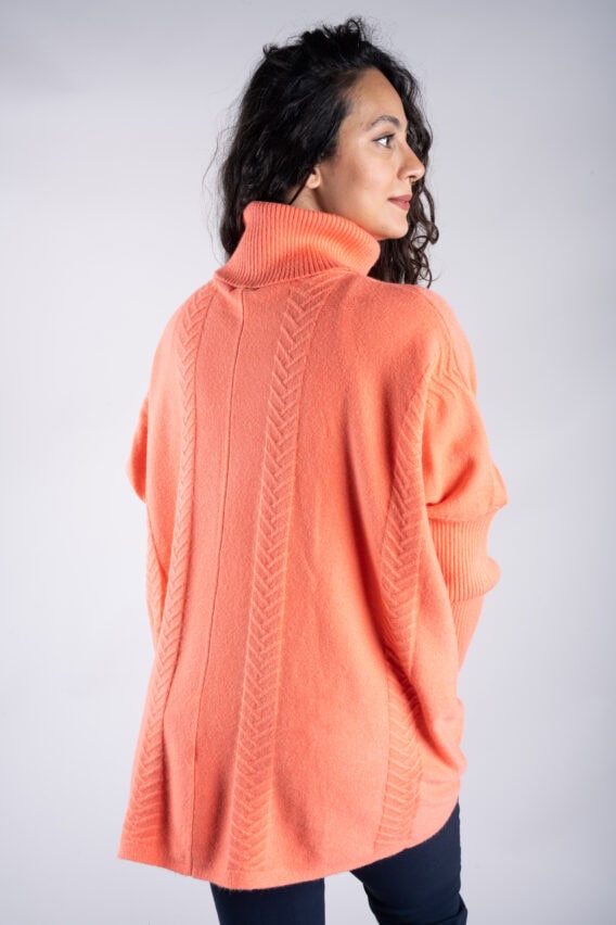 Stay cosy and stylish in this Roll Neck Chevron Knit Jumper. Featuring a unique chevron knit pattern on the front and back, this jumper is sure to make a statement. The batwing sleeves add a touch of elegance, while the ribbed sleeves and roll neck provide extra warmth and comfort. With two front pockets for added convenience, this jumper is the perfect addition to your winter wardrobe.