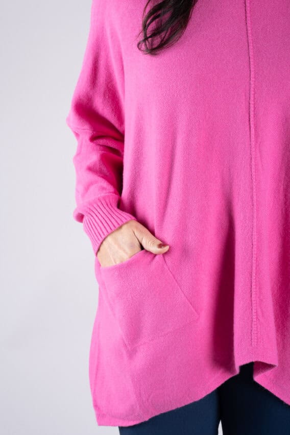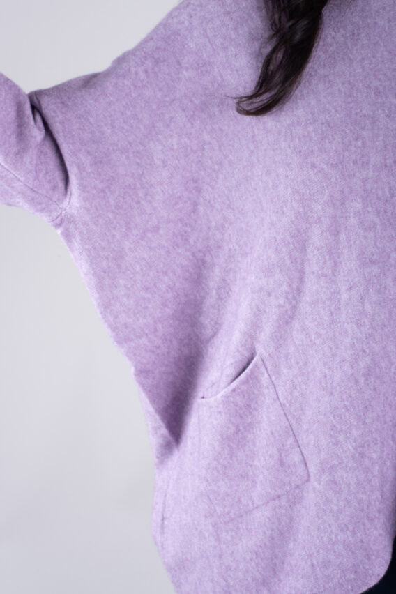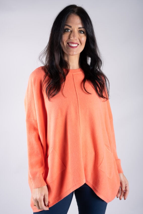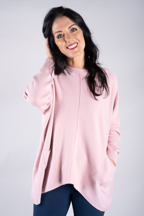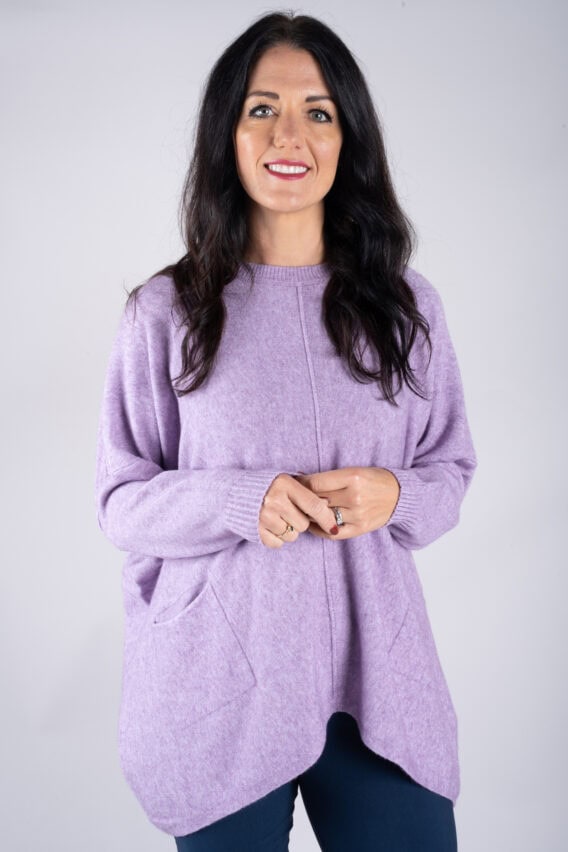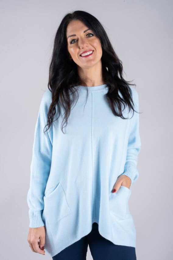 Stay cosy and stylish in this Round Neck Batwing Sleeve Jumper. Featuring two front pockets, a ribbed neckline and cuffs, and a longer back than front for a flattering shape, this jumper is perfect for everyday wear. The full-length sleeves keep you warm, while the relaxed fit and batwing sleeves add a touch of modern flair. Pair it with jeans or magic trousers for a chic and effortless look.