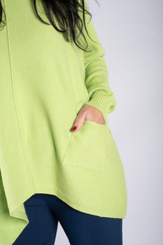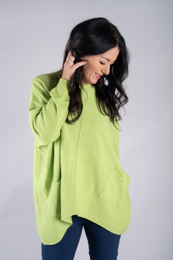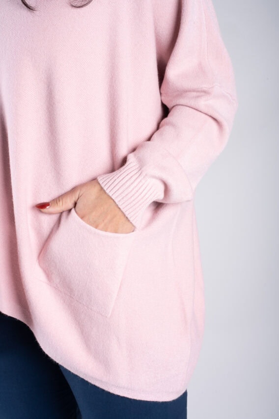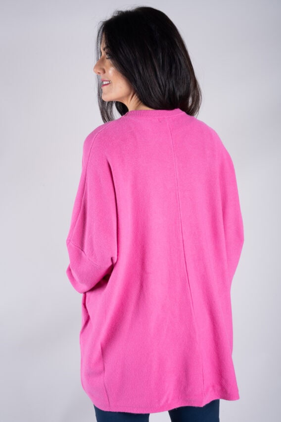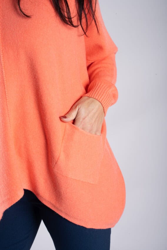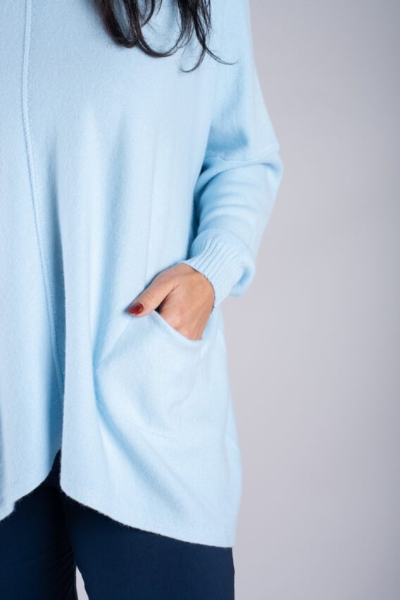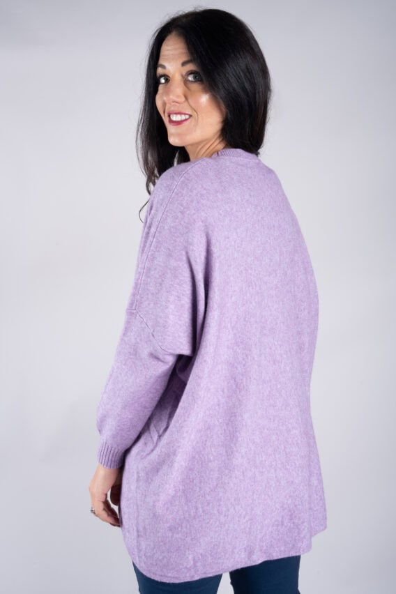 Stay cosy and stylish in this Round Neck Batwing Sleeve Jumper. Featuring two front pockets, a ribbed neckline and cuffs, and a longer back than front for a flattering shape, this jumper is perfect for everyday wear. The full-length sleeves keep you warm, while the relaxed fit and batwing sleeves add a touch of modern flair. Pair it with jeans or magic trousers for a chic and effortless look.