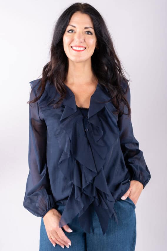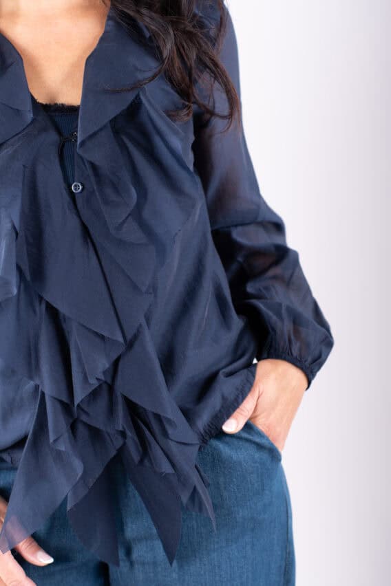 Ruffle Front V-Neck Blouse