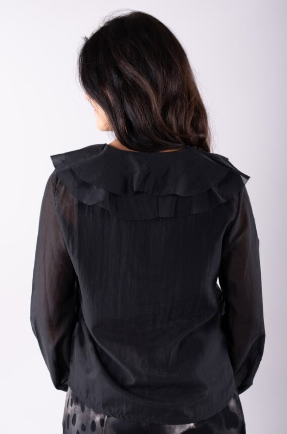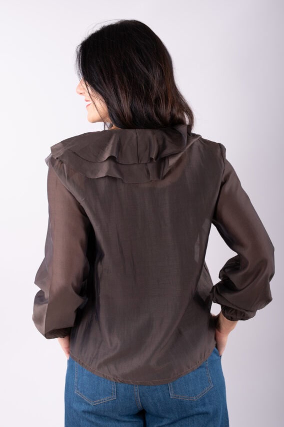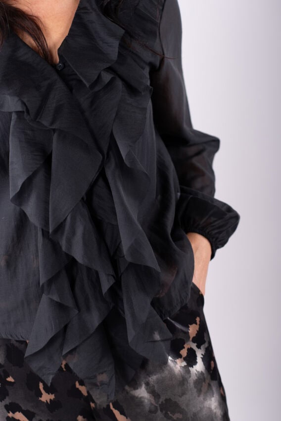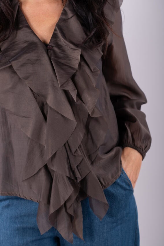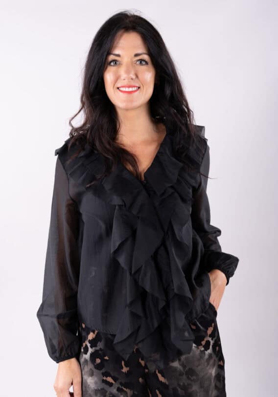 The sheer Ruffle Front V-Neck Blouse is a versatile and stylish piece that is perfect for any occasion. With its button-down front for fastening, elasticated cuffs, and flattering v-neckline, this blouse can be dressed up or down effortlessly. Pair it with a cami underneath for a chic and sophisticated look. The ruffle detailing adds a feminine touch, making it a must-have addition to your wardrobe.