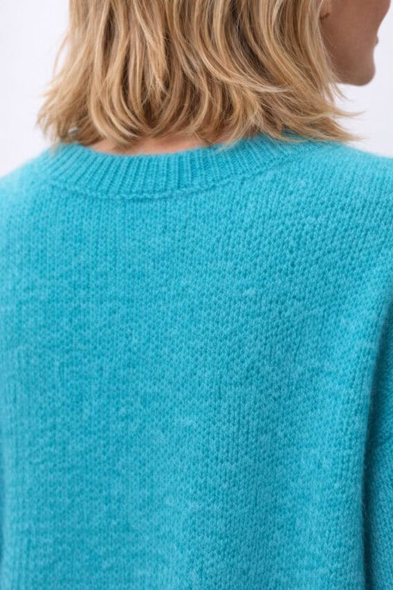 Stay cozy and stylish in this soft mohair blend round neck knitted jumper. Featuring short length drop sleeves, this sweater is perfect for transitional weather. The ribbed detailing on the sleeves, hem and neckline adds a touch of texture and visual interest. Pair it with your favourite jeans or leggings for a casual and chic look.