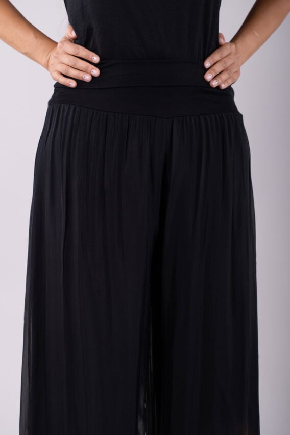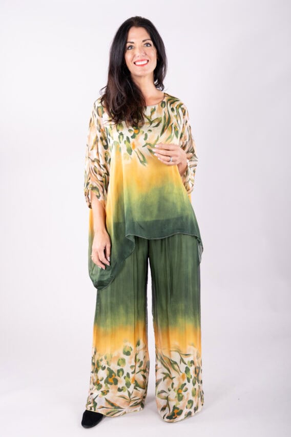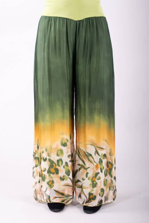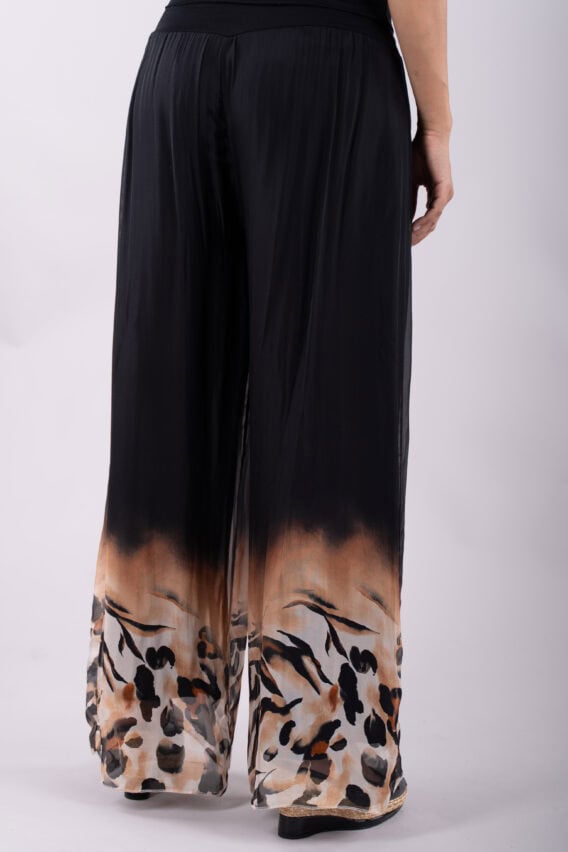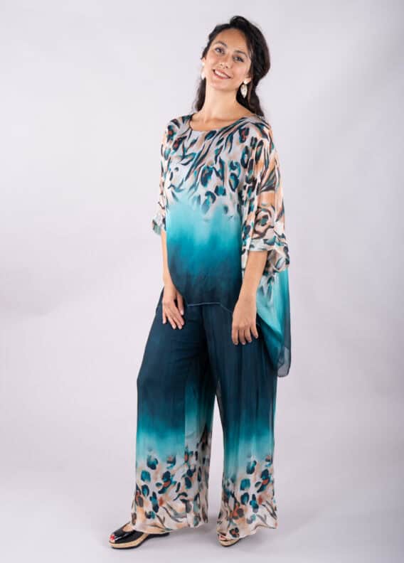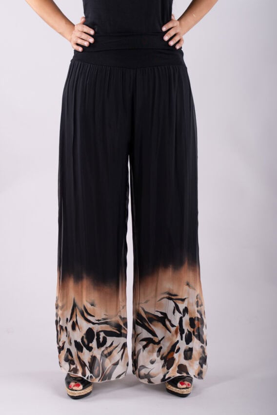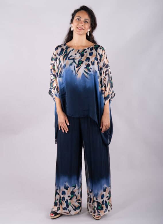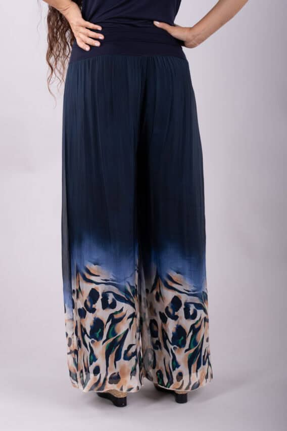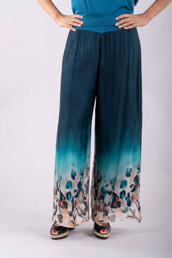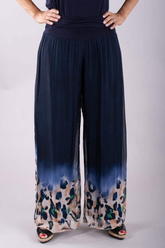 These stylish trousers feature a bold leopard print design that adds a touch of glamour to any outfit. The silk blend fabric is soft and luxurious, while the elasticated waistband ensures a comfortable and secure fit. The trousers are lined inside for added comfort and warmth, and the wide leg silhouette creates a flattering and on-trend look. Perfect for adding a statement piece to your wardrobe, these trousers are sure to turn heads wherever you go. Pair with our matching top.