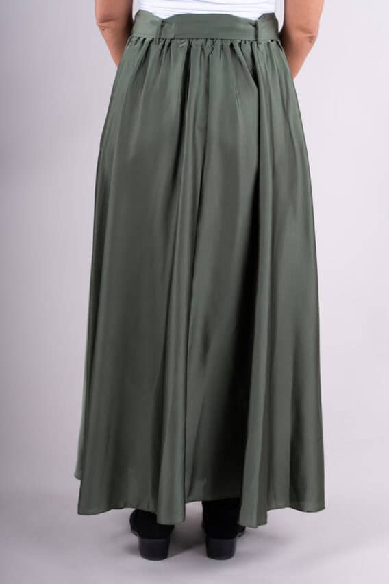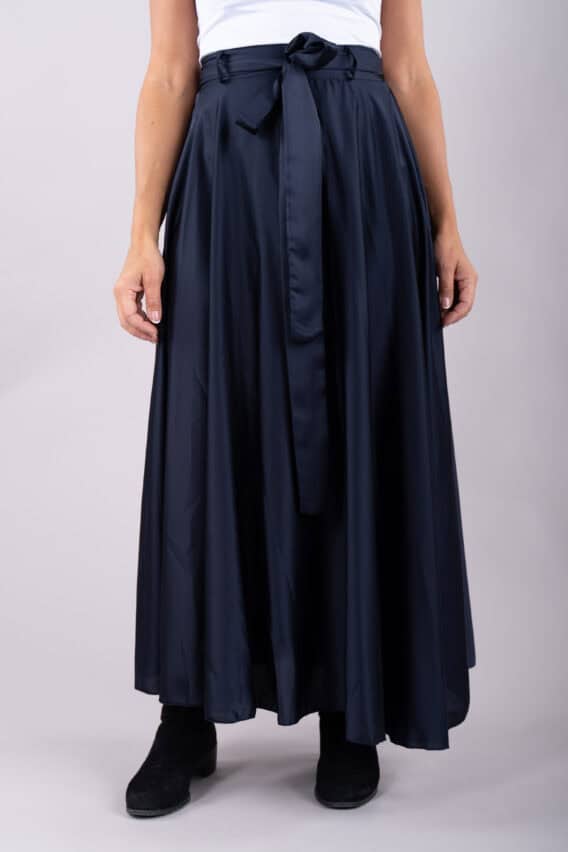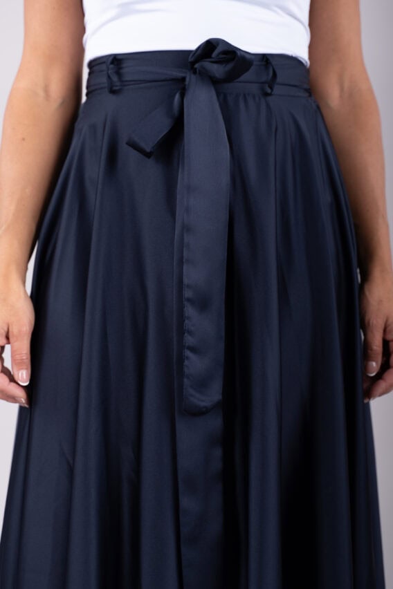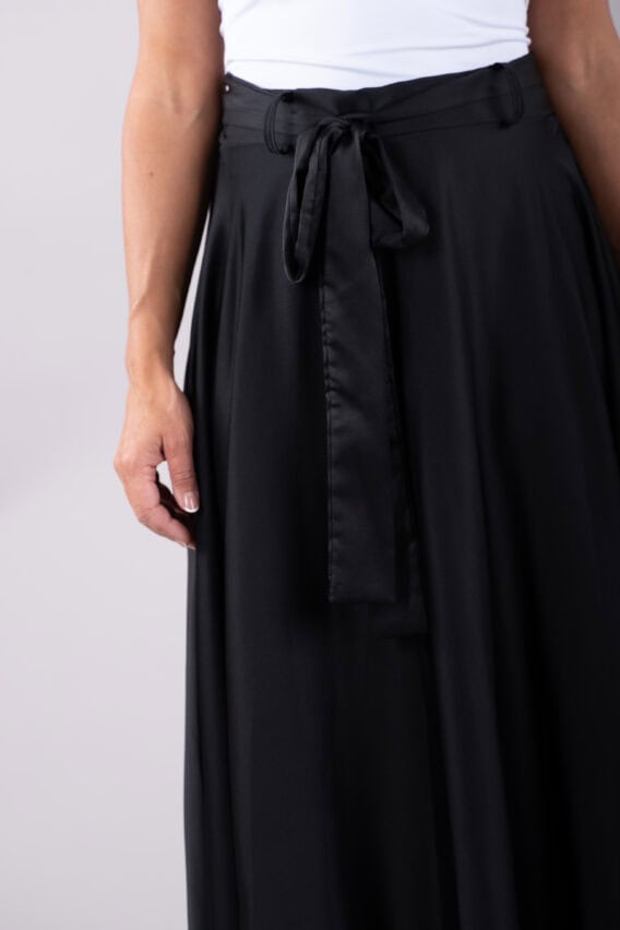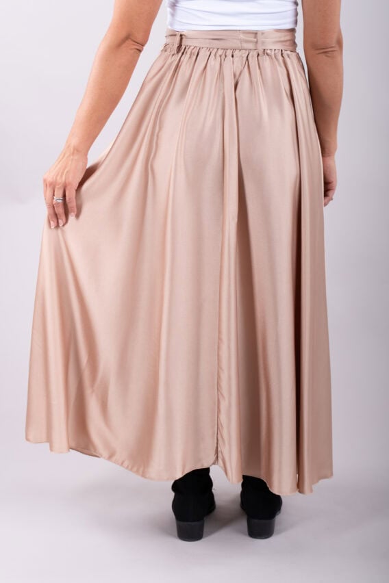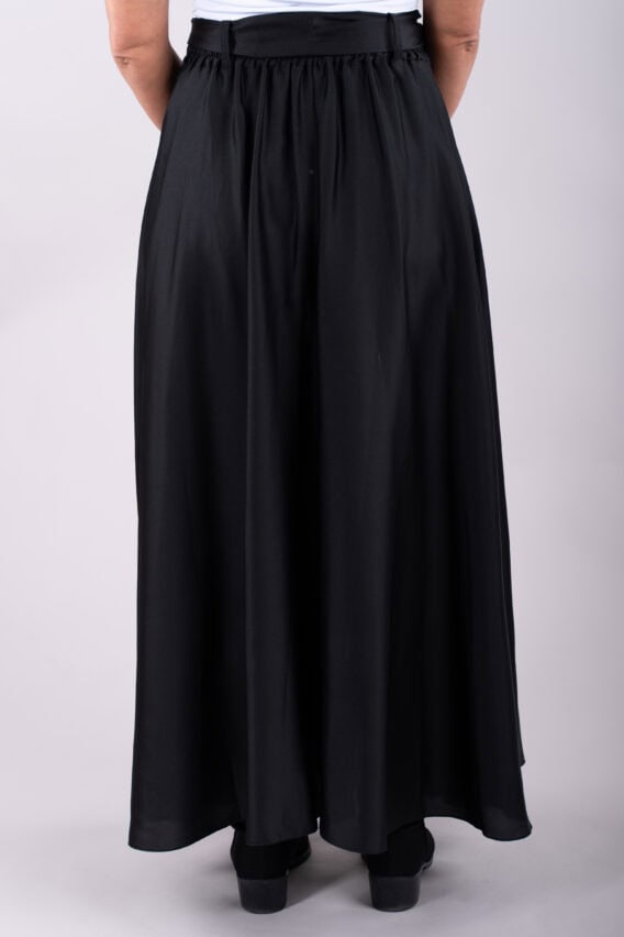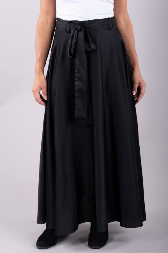 This elegant Silky Feel A-line Maxi Skirt is the perfect addition to your evening or special occasion wardrobe. The detachable tie belt adds a touch of sophistication, while the elasticated waistband ensures a comfortable and flattering fit. Pair it with a sleek blouse or a statement top for a stunning look that will turn heads wherever you go.