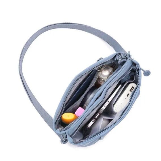 Stay organised in style with this lightweight waterproof small crossbody bag, designed for everyday convenience and practicality. Made from durable water-resistant fabric, it helps protect your belongings from light rain and splashes while remaining soft and comfortable to carry. The bag features three compartments, two secure zip compartments and one in-between with a silver popper for keeping essentials neatly separated. It also has a zipped pocket at the back. Despite its compact size, it offers enough space for daily essentials such as a phone, cards, cosmetics, and small accessories. The adjustable shoulder strap allows for comfortable crossbody or shoulder wear, making it perfect for travel, shopping, commuting, or everyday outings. This stylish and practical bag is ideal for keeping your essentials secure while on the go.
