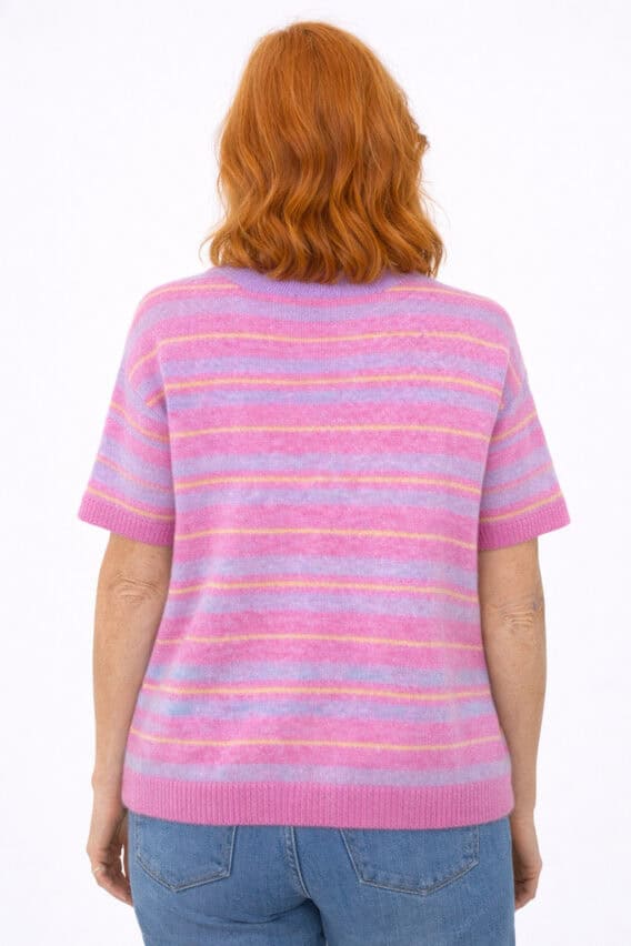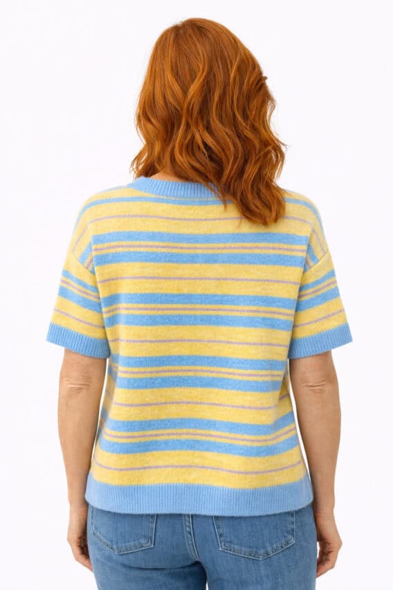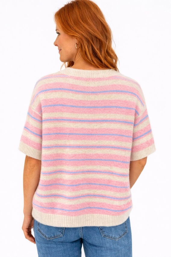 The short drop sleeves create a relaxed silhouette, while ribbed cuffs, neckline and hem provide structure and a comfortable fit. Easy to style with jeans or casual trousers, this lightweight knit is perfect for effortless everyday dressing.