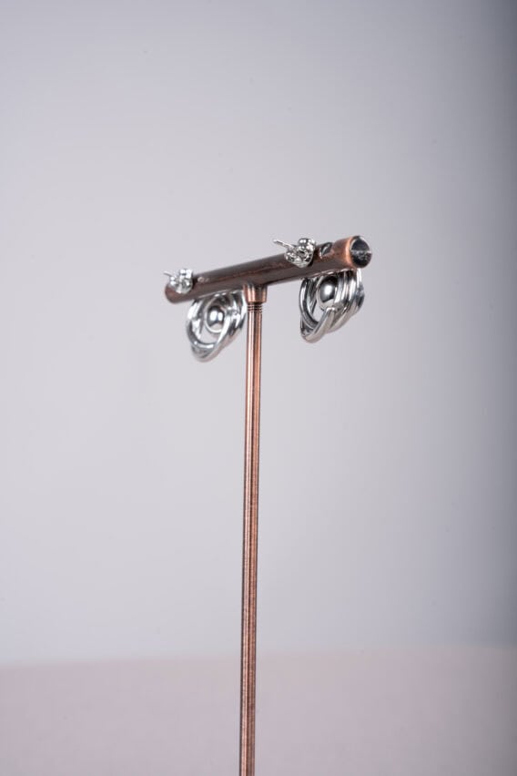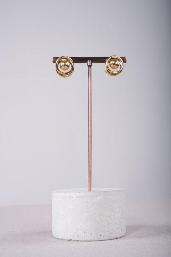These Twisted Circular earrings are a modern and stylish addition to any jewellery collection. Made from durable stainless steel, these stud earrings are nickel-free, making them safe for sensitive ears. The unique twisted circular design adds a touch of sophistication to any outfit, making them perfect for both casual and formal occasions. Pair with our matching “Twisted Circular Stainless Steel Adjustable Necklace” for a complete set.