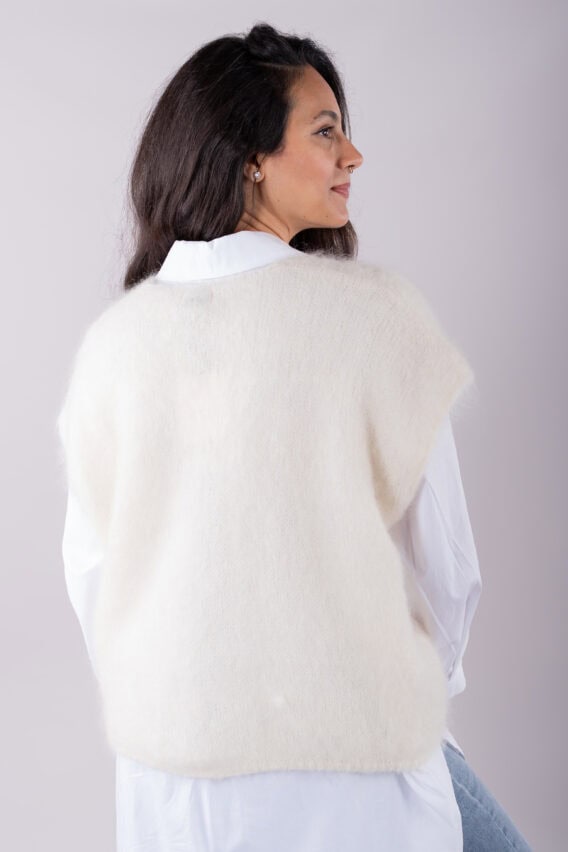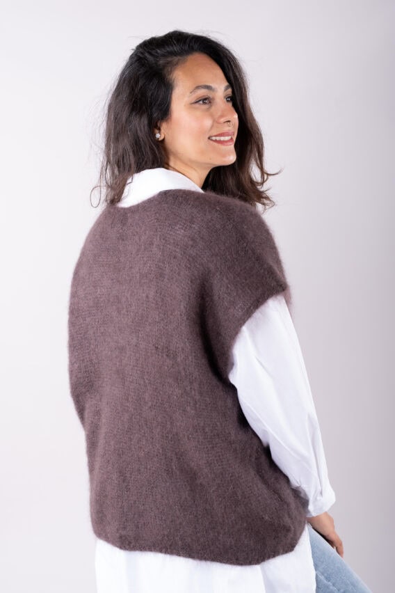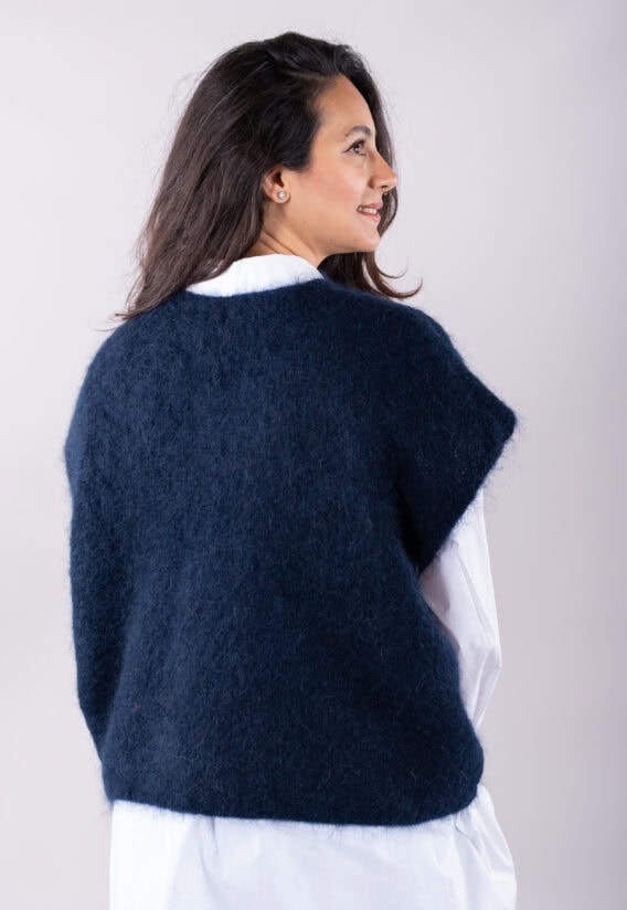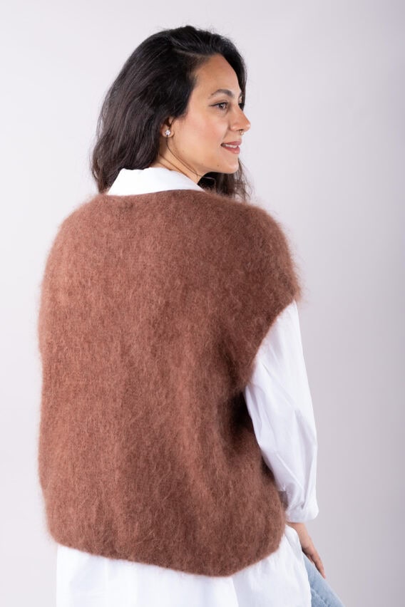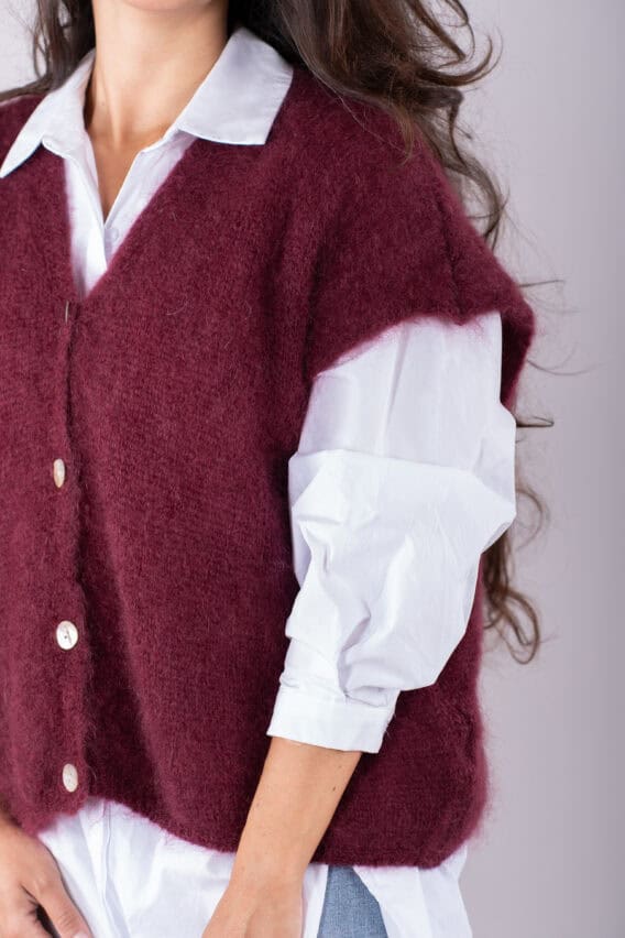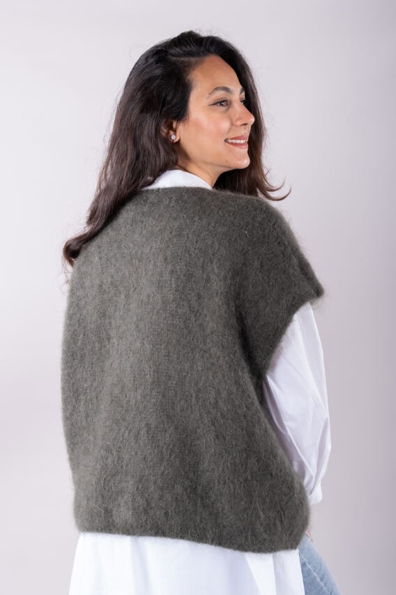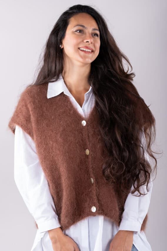 Indulge in luxury with this exquisite V-Neck cardigan crafted from a sumptuous Mohair blend. The pearl button detailing adds a touch of elegance, while the short drop batwing sleeves give it a modern twist. This versatile piece is perfect for layering during the autumn and winter months, and looks effortlessly chic when paired with our oversized cotton white shirt. Stay cozy and stylish in this must-have wardrobe staple.