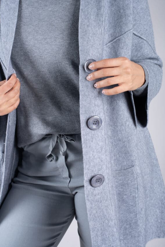 Stay cosy and stylish with our V-Neck Buttoned Knit Cardigan. This versatile piece features two front pockets for added convenience, as well as three large buttons down the front for easy fastening. The piping effect across the chest adds a touch of sophistication, while the ripple effect cuffs provide a unique and eye-catching detail. With full-length sleeves, this cardigan is perfect for layering during the cooler months. Stay warm and fashionable in this must-have wardrobe staple.