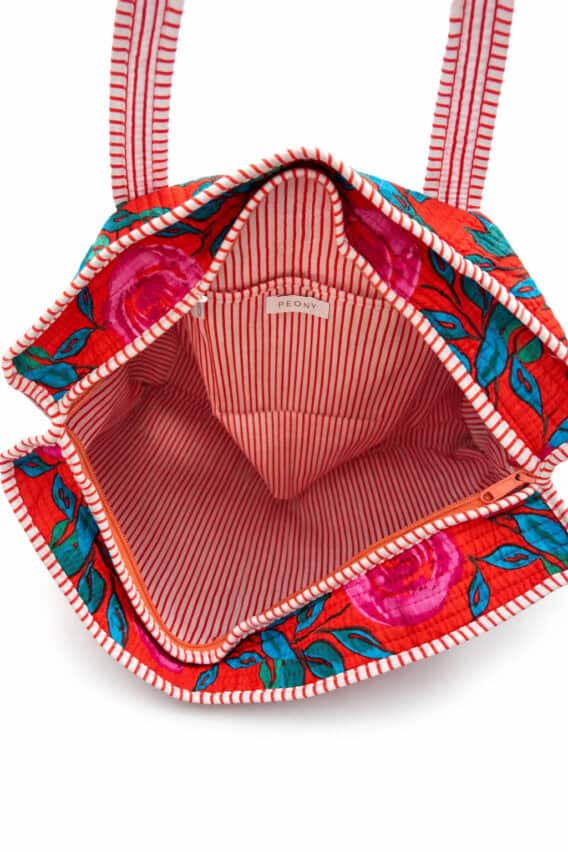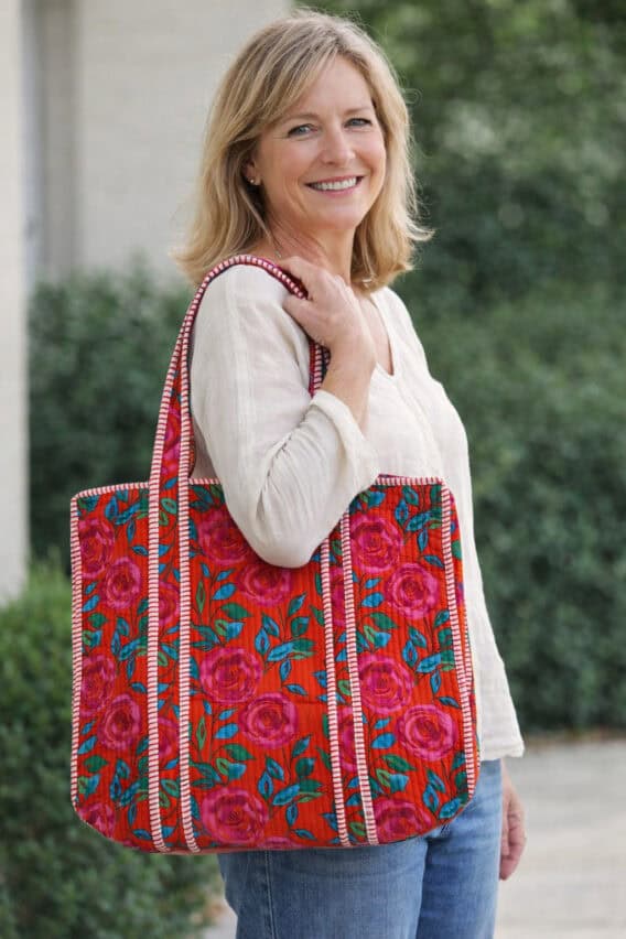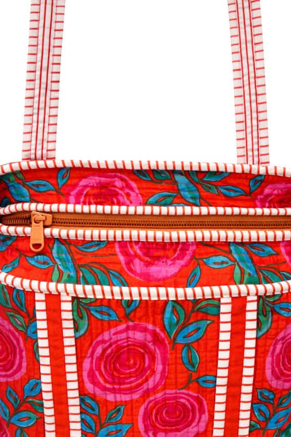 Wild Rose Cotton Quilted Tote Bag