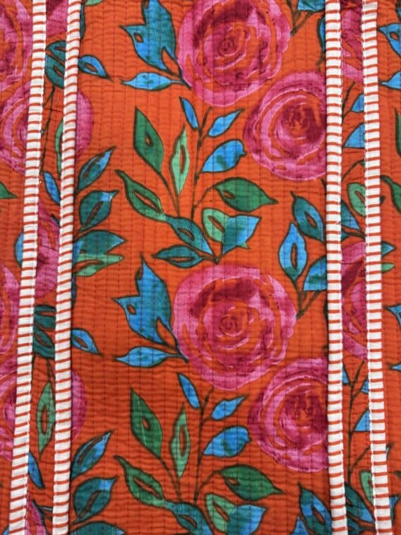 Bright, cheerful, and made for sunny days, this quilted cotton tote features a vibrant wild rose print in pink and red, accented by fresh blue and green leaves. Perfect for summer beach days, holidays, and everyday outings, it brings a playful yet timeless charm to your warm-weather style.