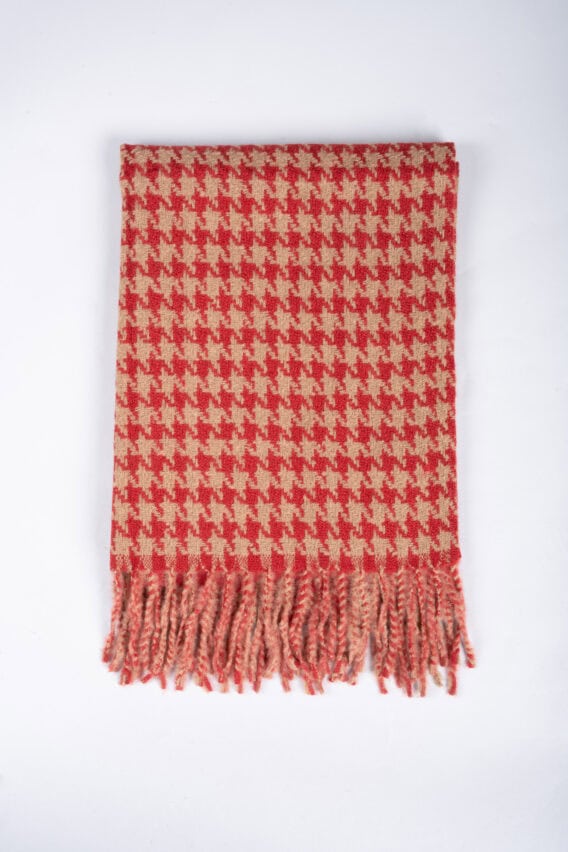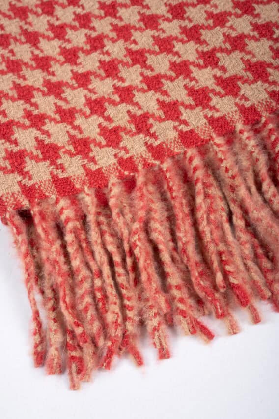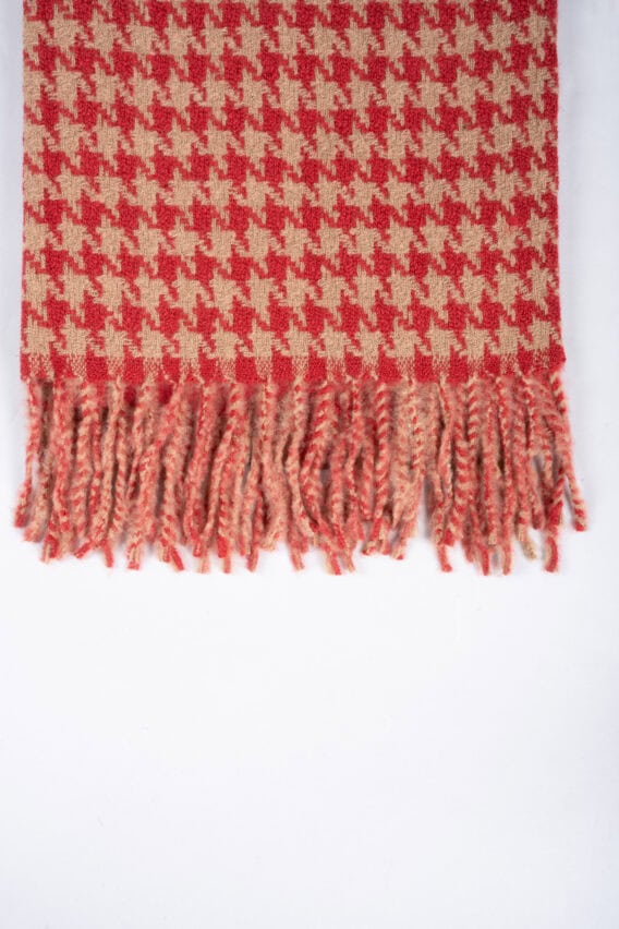 The Woven Houndstooth Tassel Scarf is a stylish and versatile accessory for the autumn and winter seasons. Featuring a classic houndstooth pattern on one side and a square check on the other, this scarf offers a unique and modern twist on a traditional design. The frayed edges add a touch of edge and texture, while the soft and cosy fabric ensures warmth and comfort. Perfect for adding a chic finishing touch to any outfit, this scarf is a must-have for the colder months.
